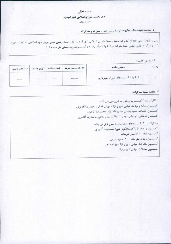 گزارش جلسه شماره ۱۰۳ شورای اسلامی شهر امیدیه