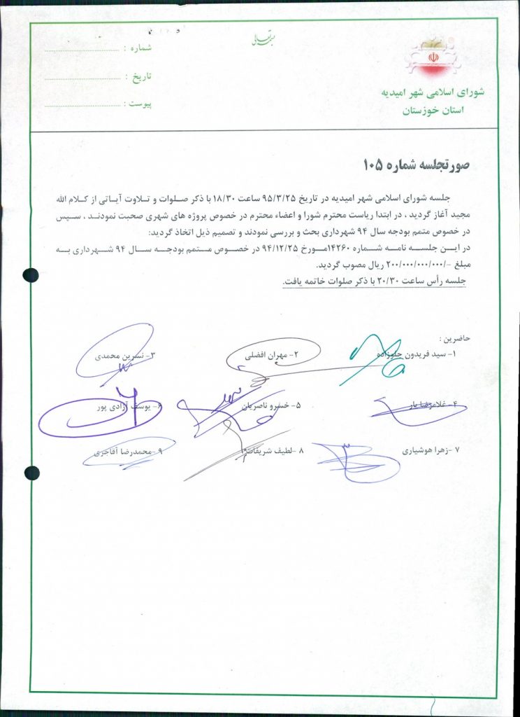 گزارش جلسه شماره ۱۰۵ شورای اسلامی شهر امیدیه