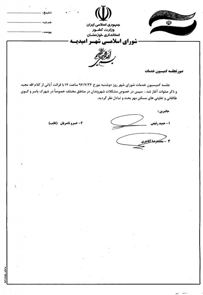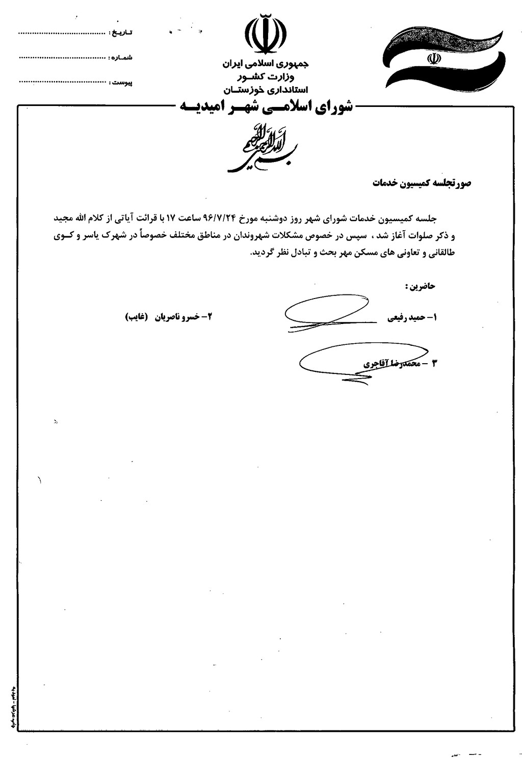 گزارش جلسه شماره ۱۲ کمیسیون خدمات شورای اسلامی شهر امیدیه