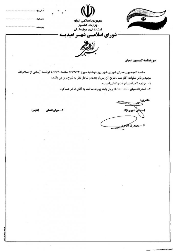گزارش جلسه شماره ۱۲ کمیسیون عمران شورای اسلامی شهر امیدیه