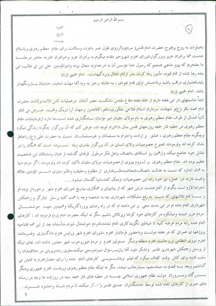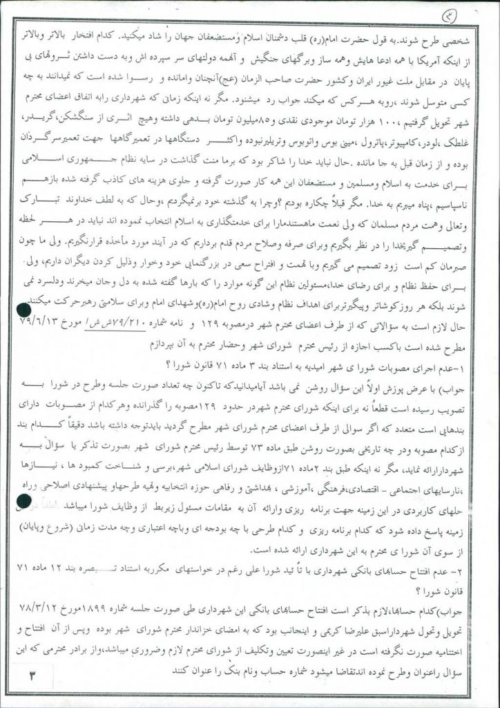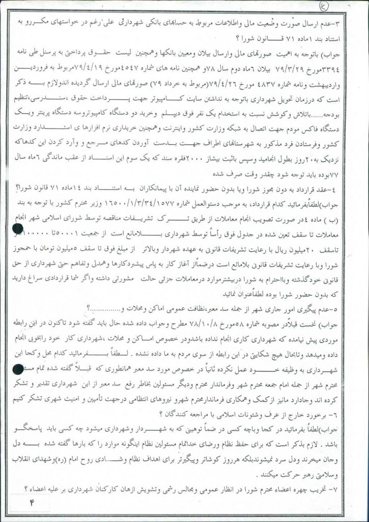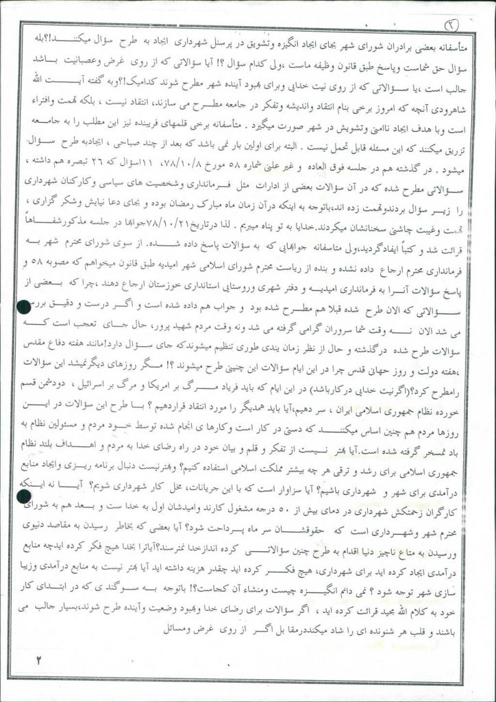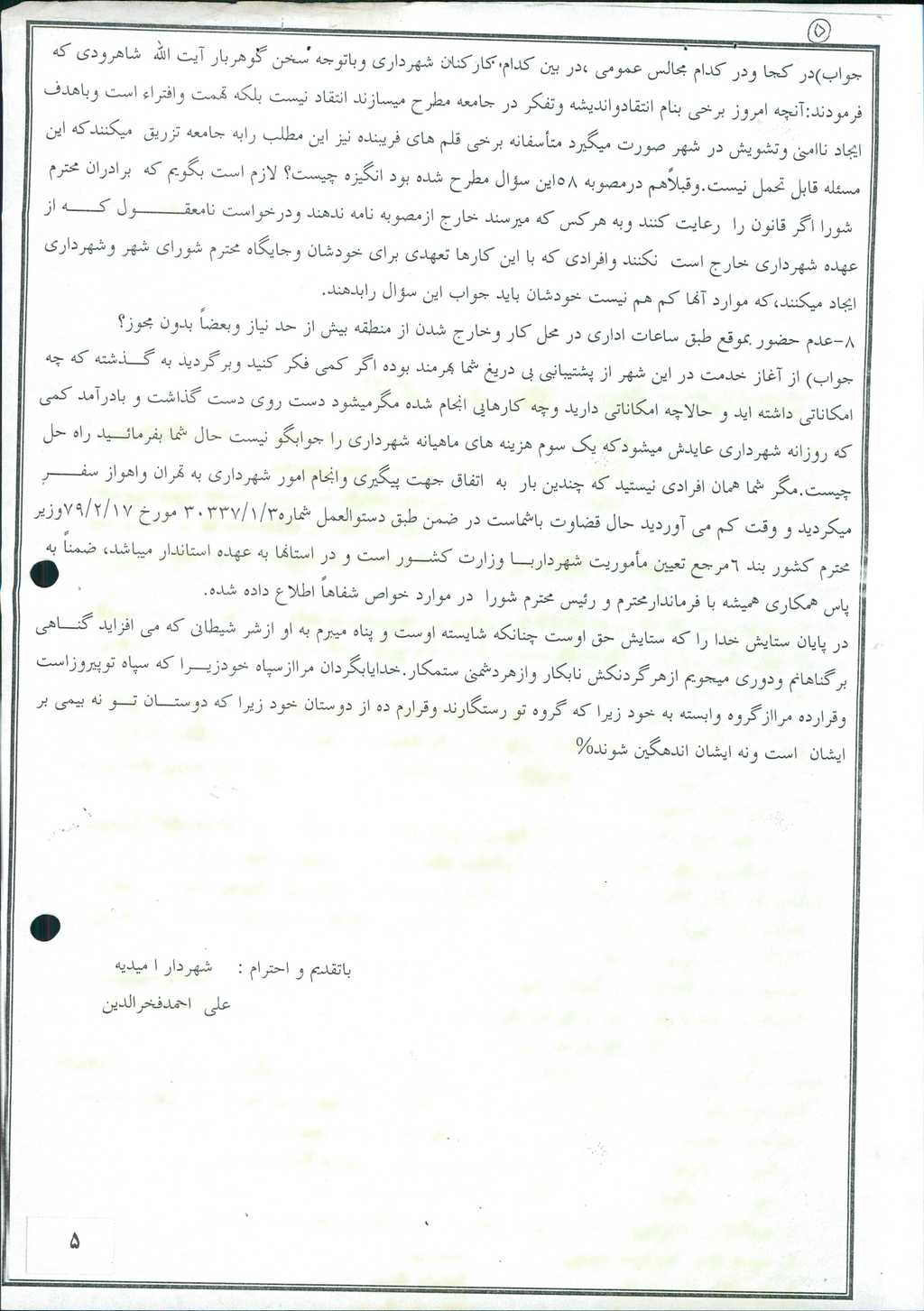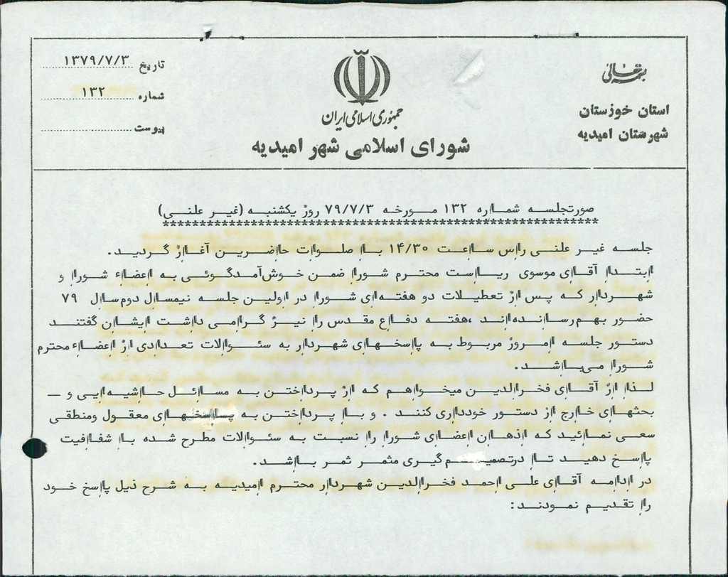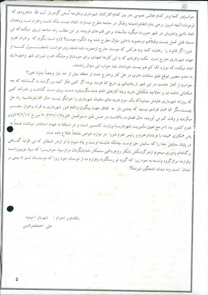 در ادامه آقای علی احمد فخرالدین شهردار محترم امیدیه به شرح ذیل پاسخ خود را تقدیم نمودند.