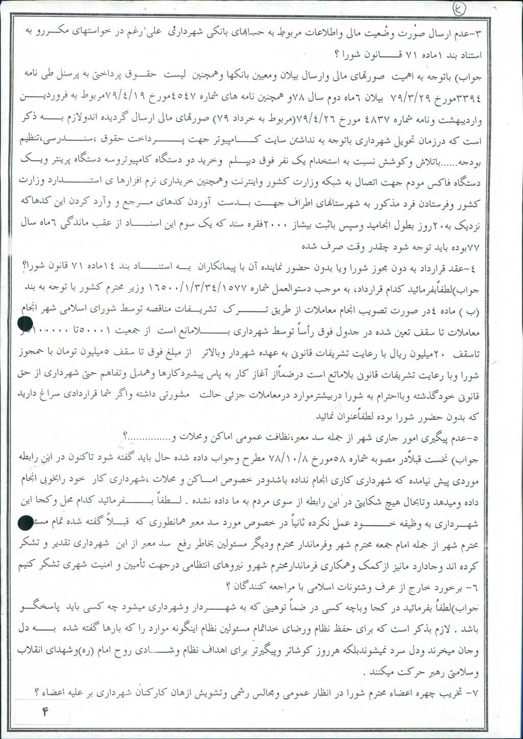 لذا از آقای فخرالدین می خواهم که از پرداختن به مسائل حاشیه ایی و بحثهای خارج از دستور خودداری کنند. و با پرداختن به پاسخهای معقول و منطقی سعی نمائید که اذهان اعضای شورا را نسبت به سئوالات مطرح شده با شفافیت پاسخ دهید تا در تصمیم گیری مثمر ثمر باشد.