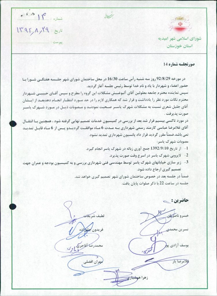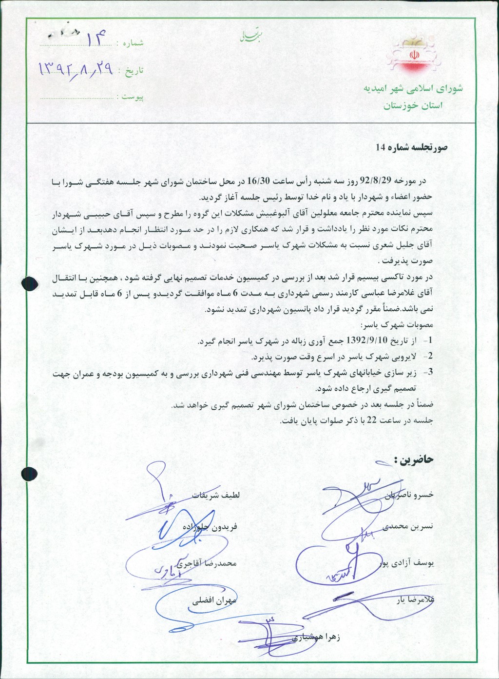 گزارش جلسه شماره ۱۴ شورای اسلامی شهر امیدیه