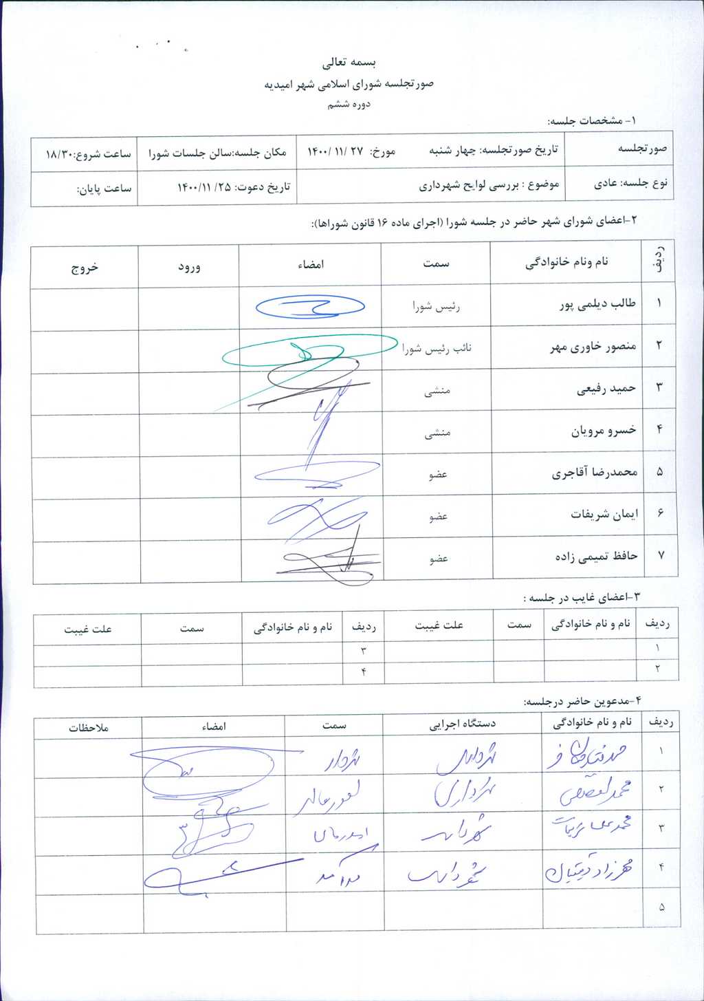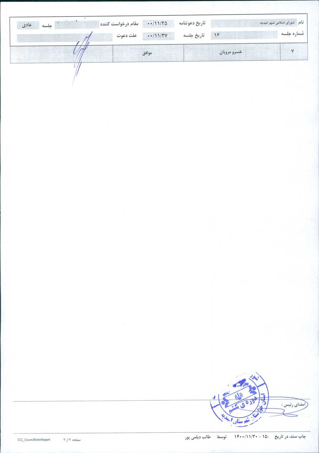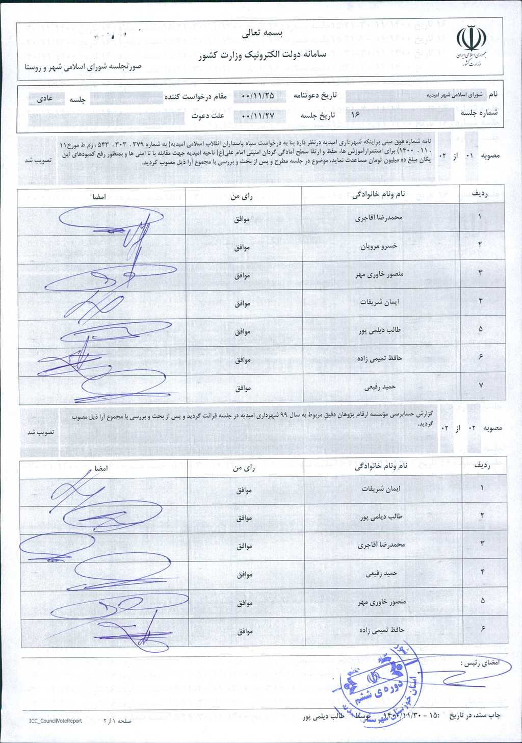 گزارش جلسه شماره ۱۶ مورخ ۱۴۰۰/۱۱/۲۷ شورای اسلامی شهر امیدیه