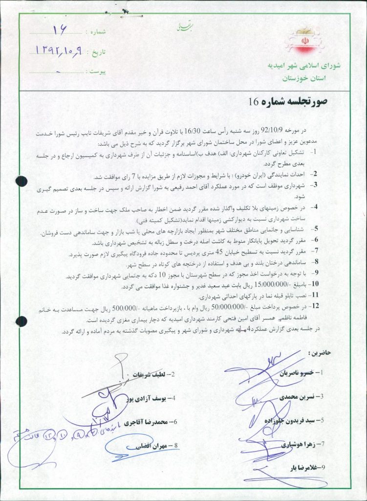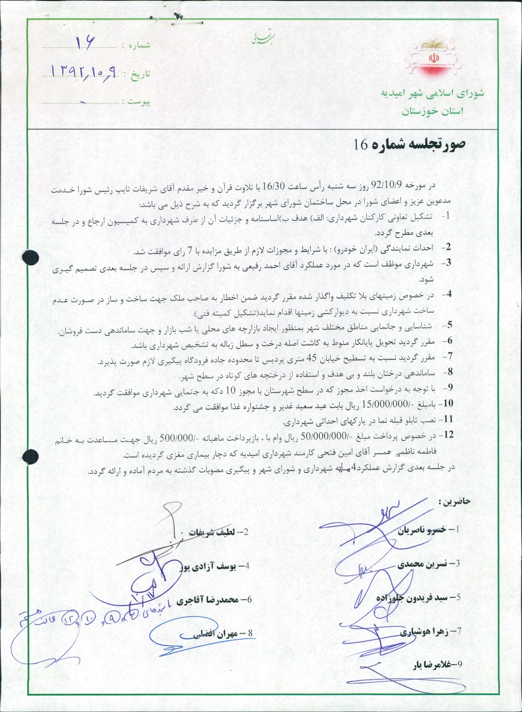 گزارش جلسه شماره ۱۶ شورای اسلامی شهر امیدیه