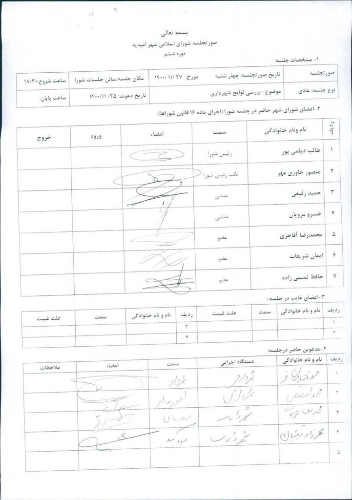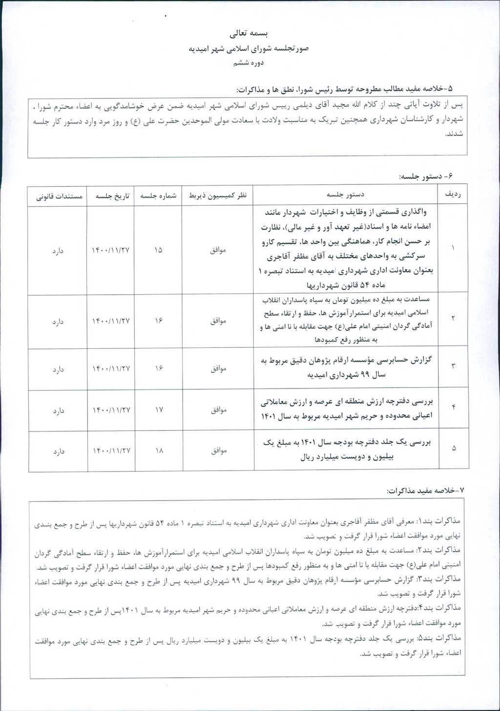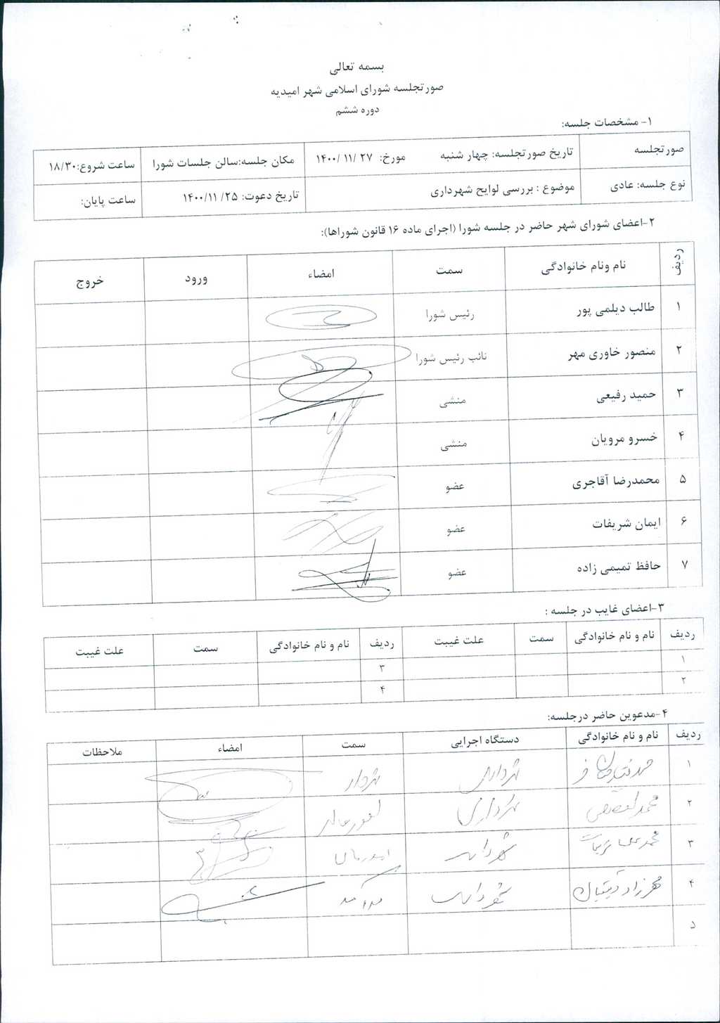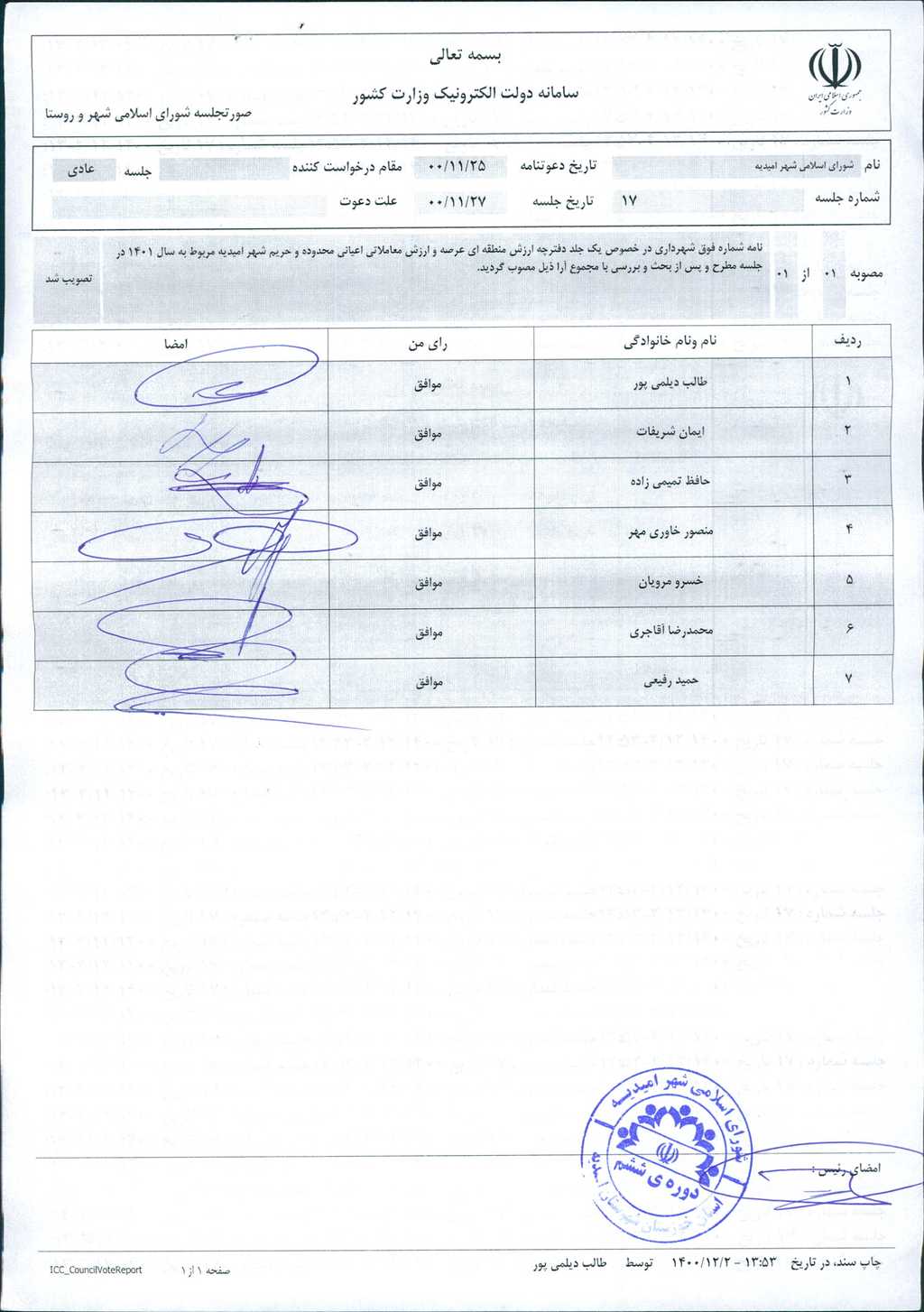 گزارش جلسه شماره ۱۷ مورخ ۱۴۰۰/۱۱/۲۷ شورای اسلامی شهر امیدیه