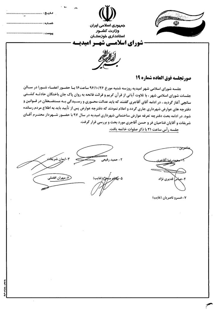 گزارش جلسه فوق العاده شماره ۱۹ شورای اسلامی شهر امیدیه
