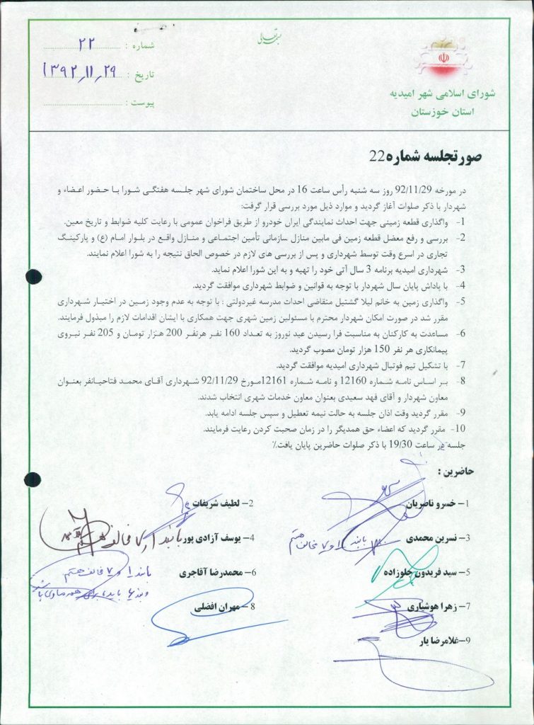 گزارش جلسه شماره ۲۲ شورای اسلامی شهر امیدیه