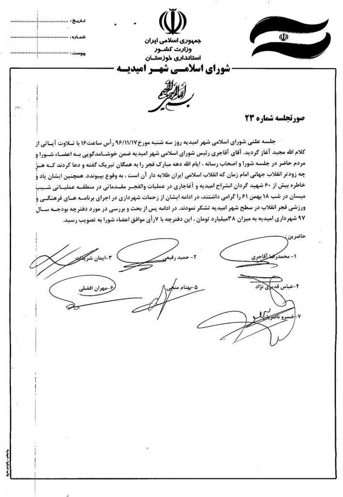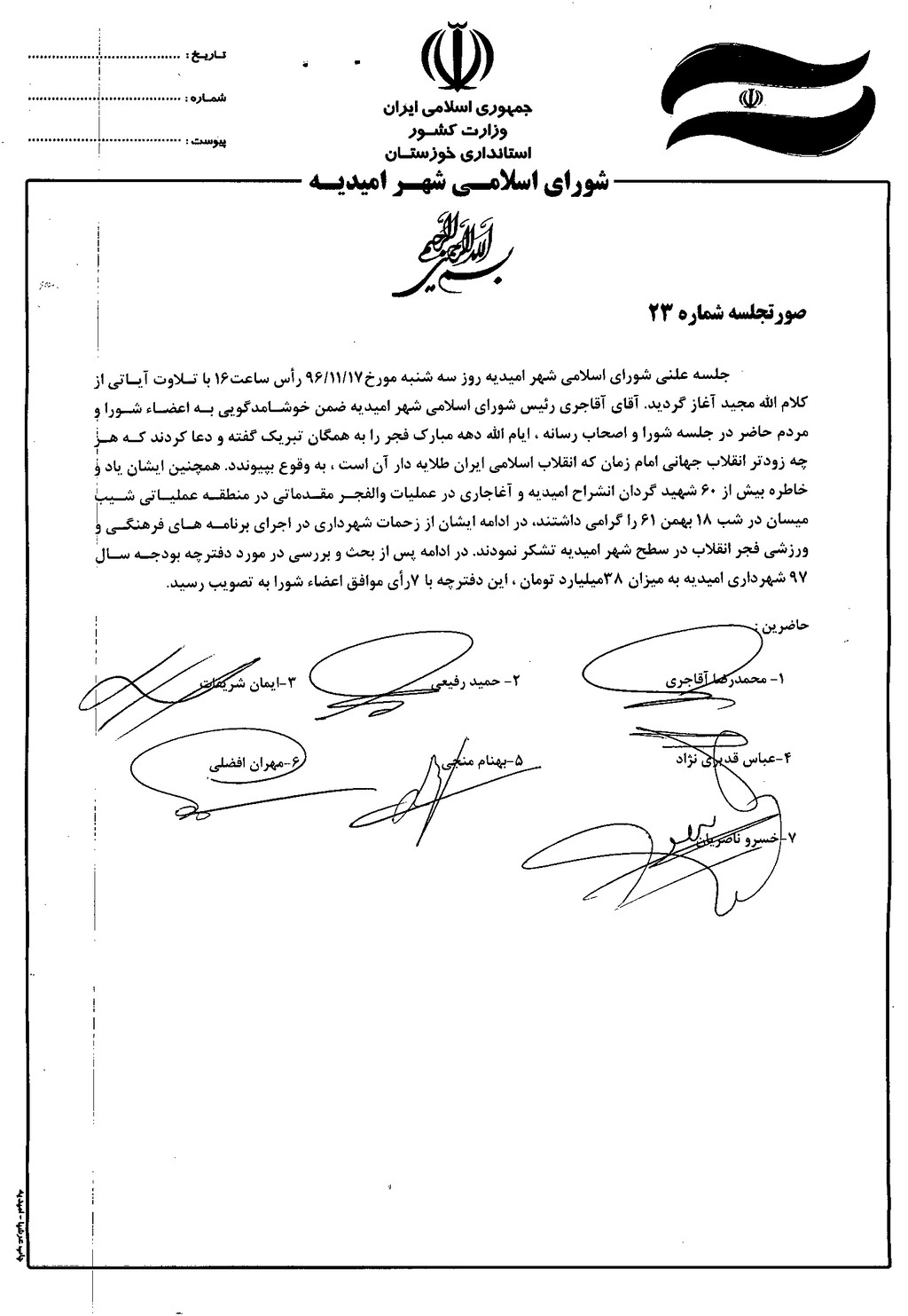 گزارش جلسه شماره ۲۳ شورای اسلامی شهر امیدیه