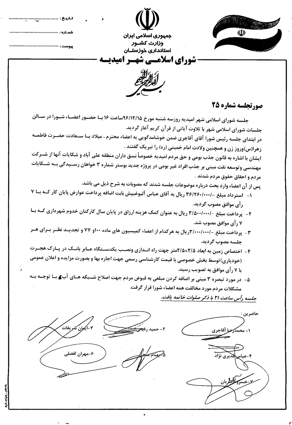 گزارش جلسه شماره ۲۵ شورای اسلامی شهر امیدیه