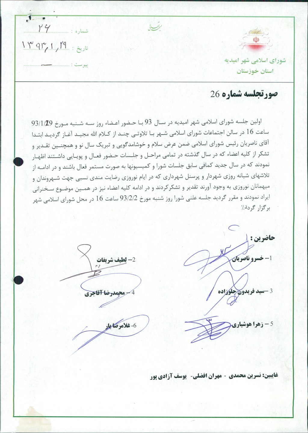 گزارش جلسه شماره ۲۶ شورای اسلامی شهر امیدیه