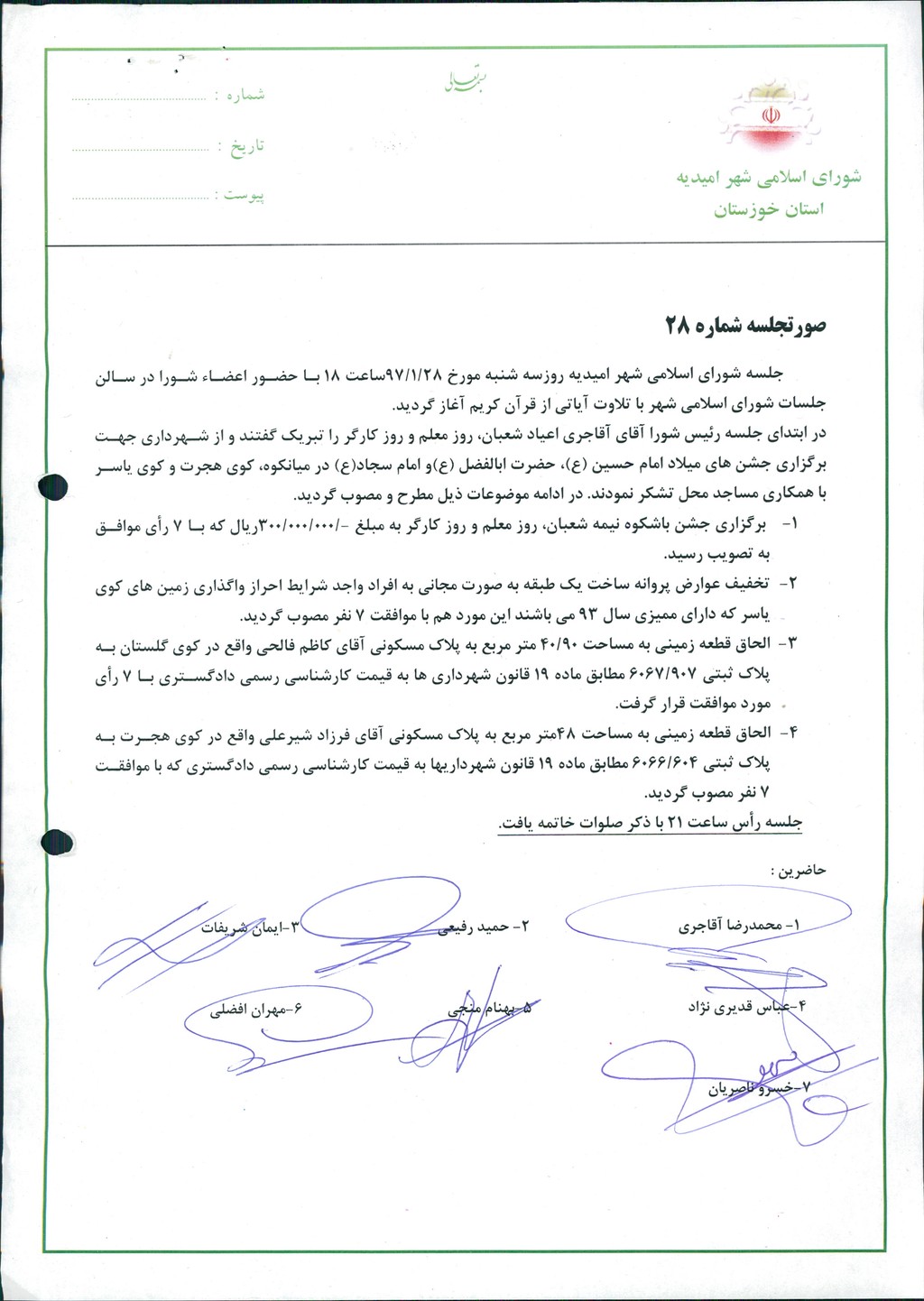 گزارش جلسه شماره ۲۸ شورای اسلامی شهر امیدیه