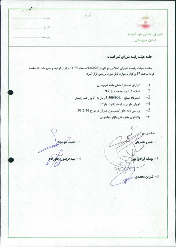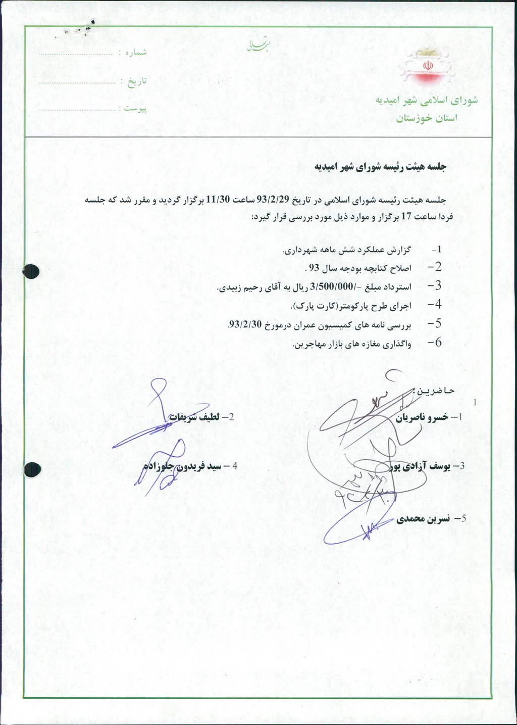 بسم الله الرحمن الرحیم گزارش جلسه شماره ۲۹ هیئت رئیسه شورای اسلامی شهر امیدیه