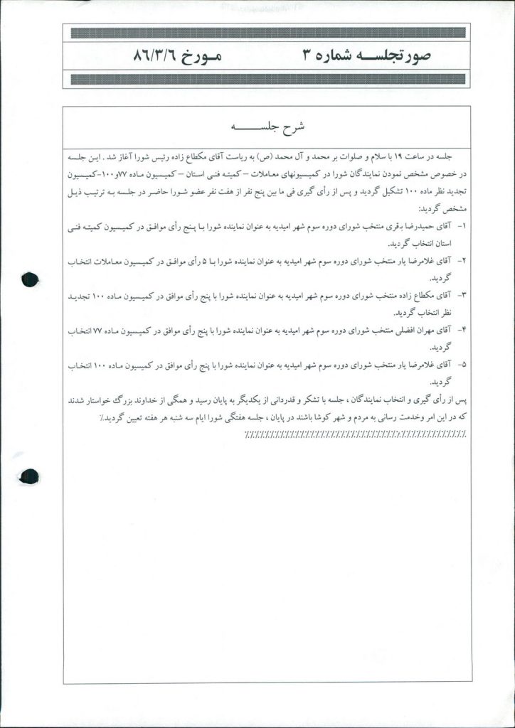 گزارش جلسه شماره ۳ شورای اسلامی شهر امیدیه