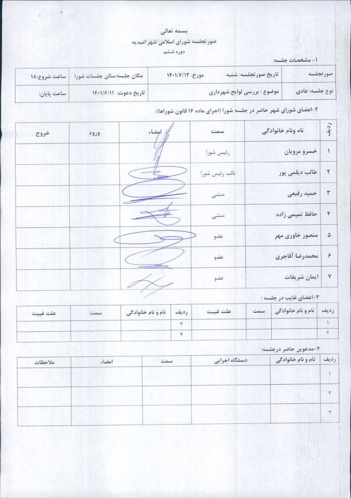 گزارش جلسه شماره ۳۲ شورای اسلامی شهر امیدیه