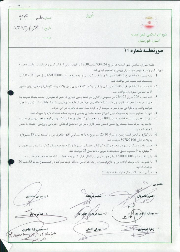 گزارش جلسه شماره ۳۴ شورای اسلامی شهر امیدیه