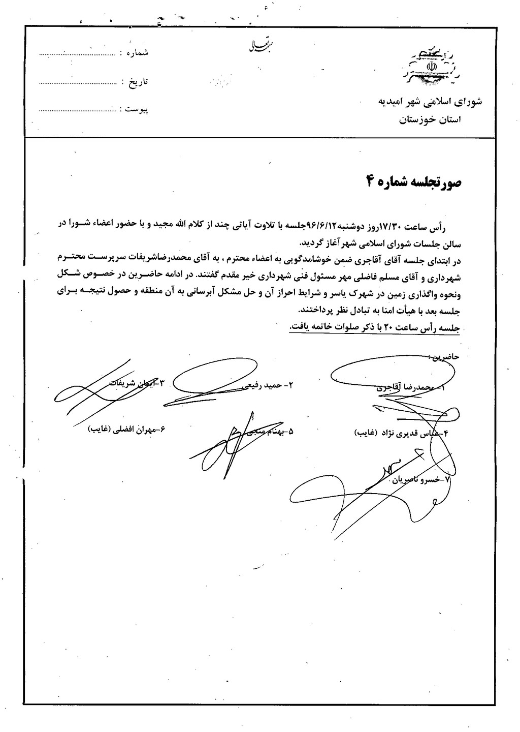 گزارش جلسه شماره ۴ شورای اسلامی شهر امیدیه