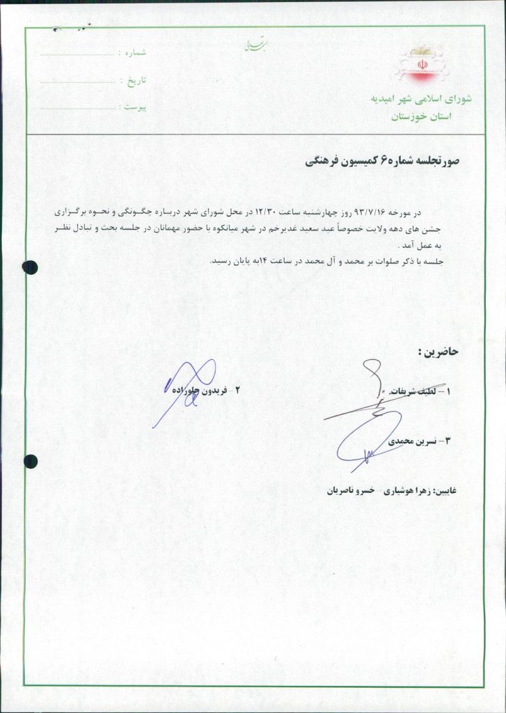 گزارش جلسه شماره ۴۰ کمیسیون فرهنگی شورای اسلامی شهر امیدیه