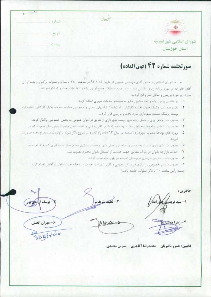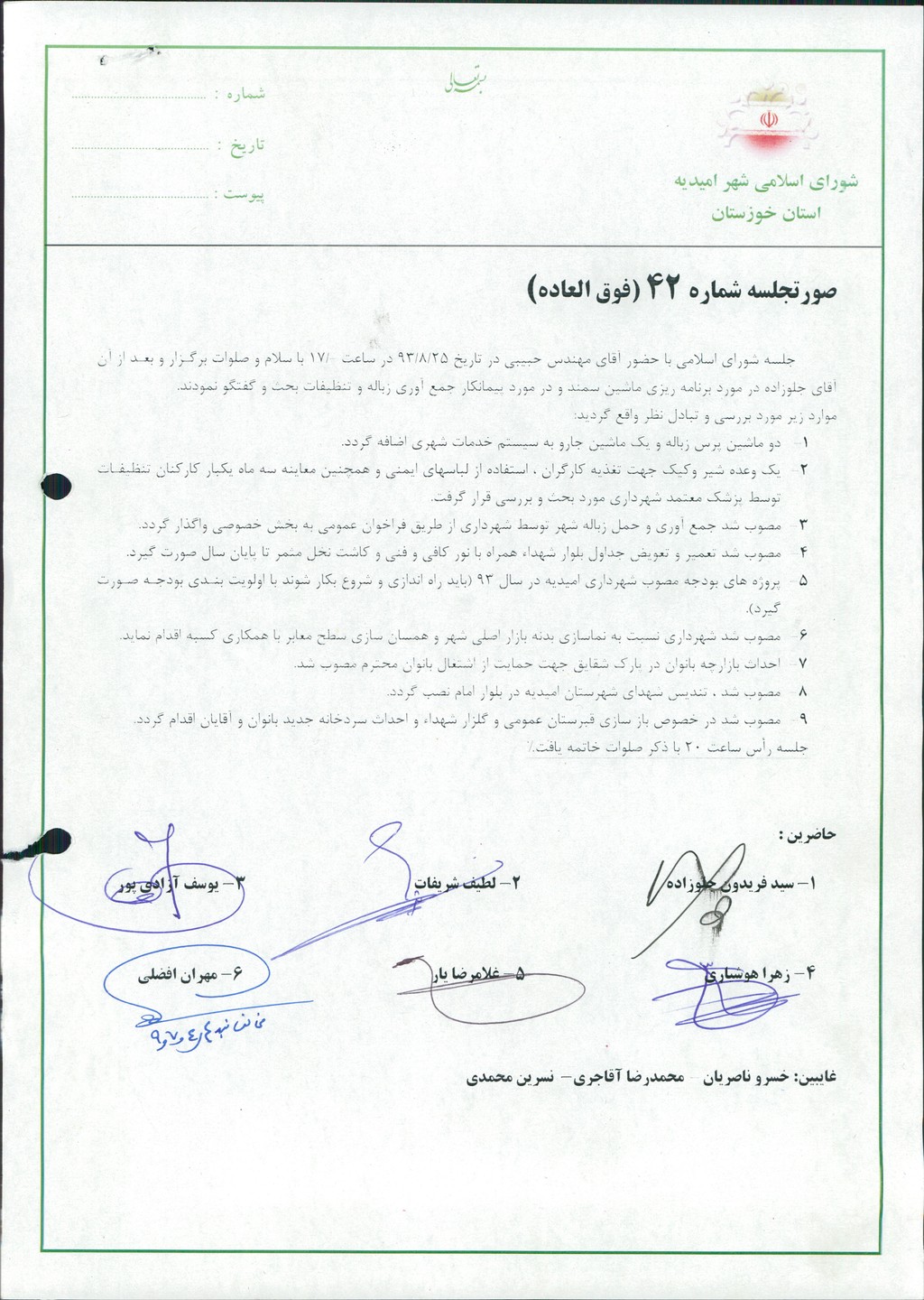 گزارش جلسه شماره ۴۲ شورای اسلامی شهر امیدیه