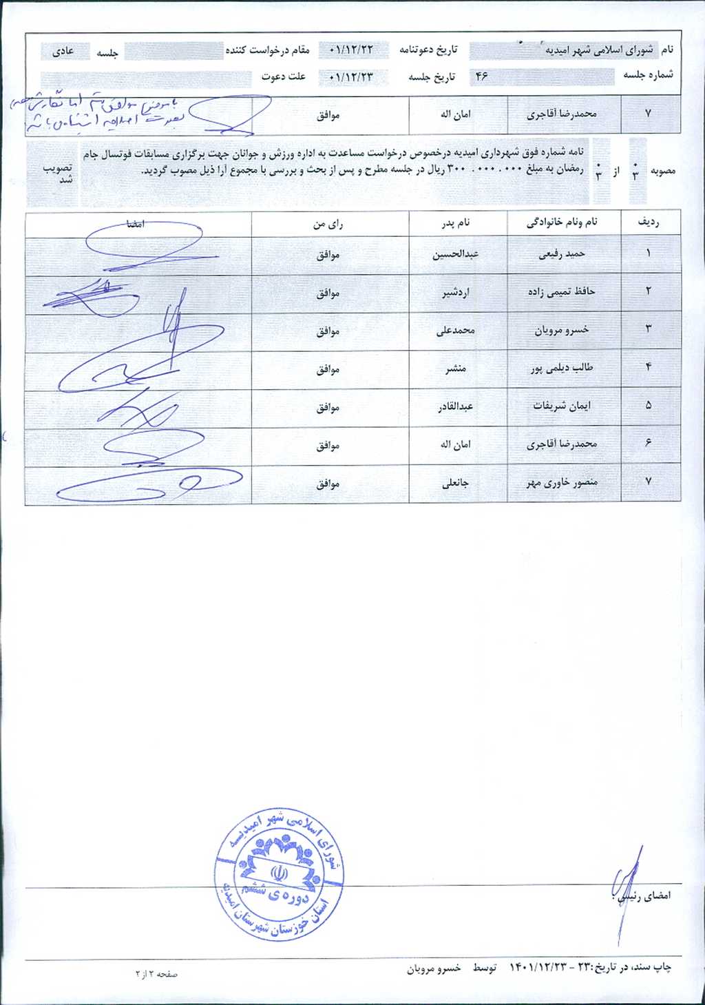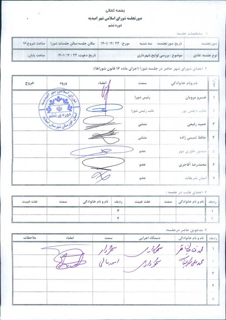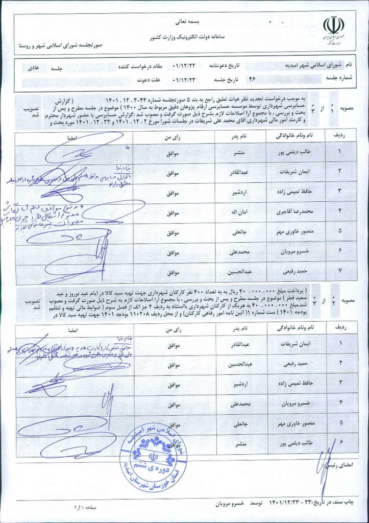 گزارش جلسه شماره ۴۶ شورای اسلامی شهر امیدیه