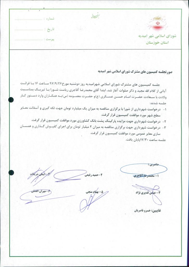گزارش جلسه شماره ۴۸ کمیسیون های مشترک شورای اسلامی شهر امیدیه