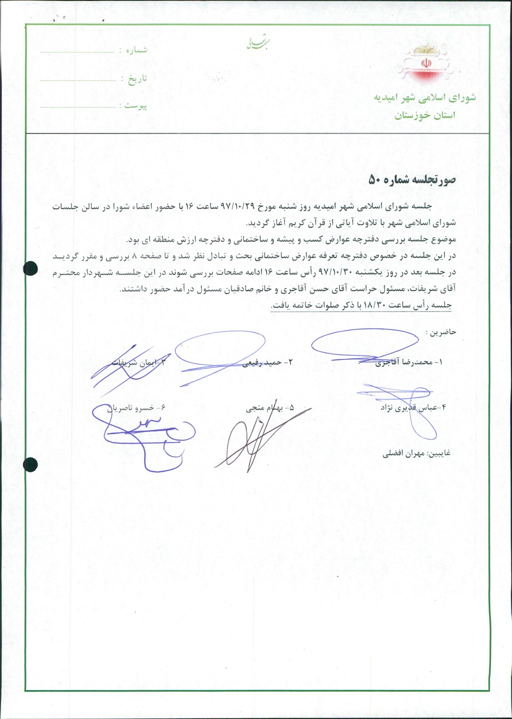 گزارش جلسه شماره ۵۰شورای اسلامی شهر امیدیه