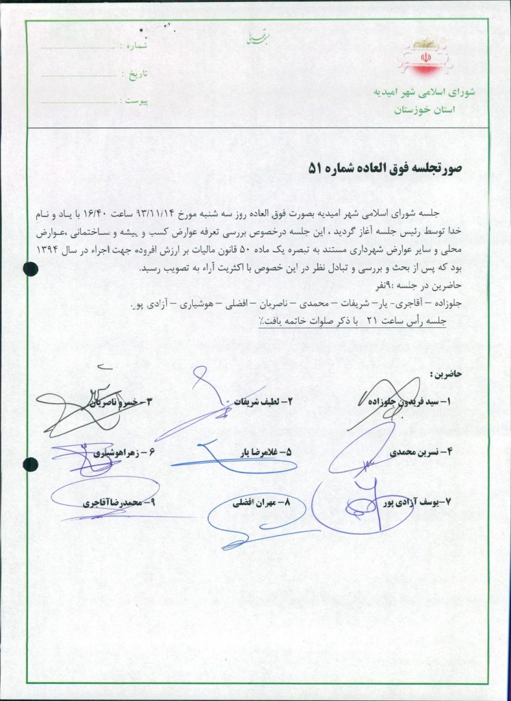 گزارش جلسه شماره ۵۱ شورای اسلامی شهر امیدیه