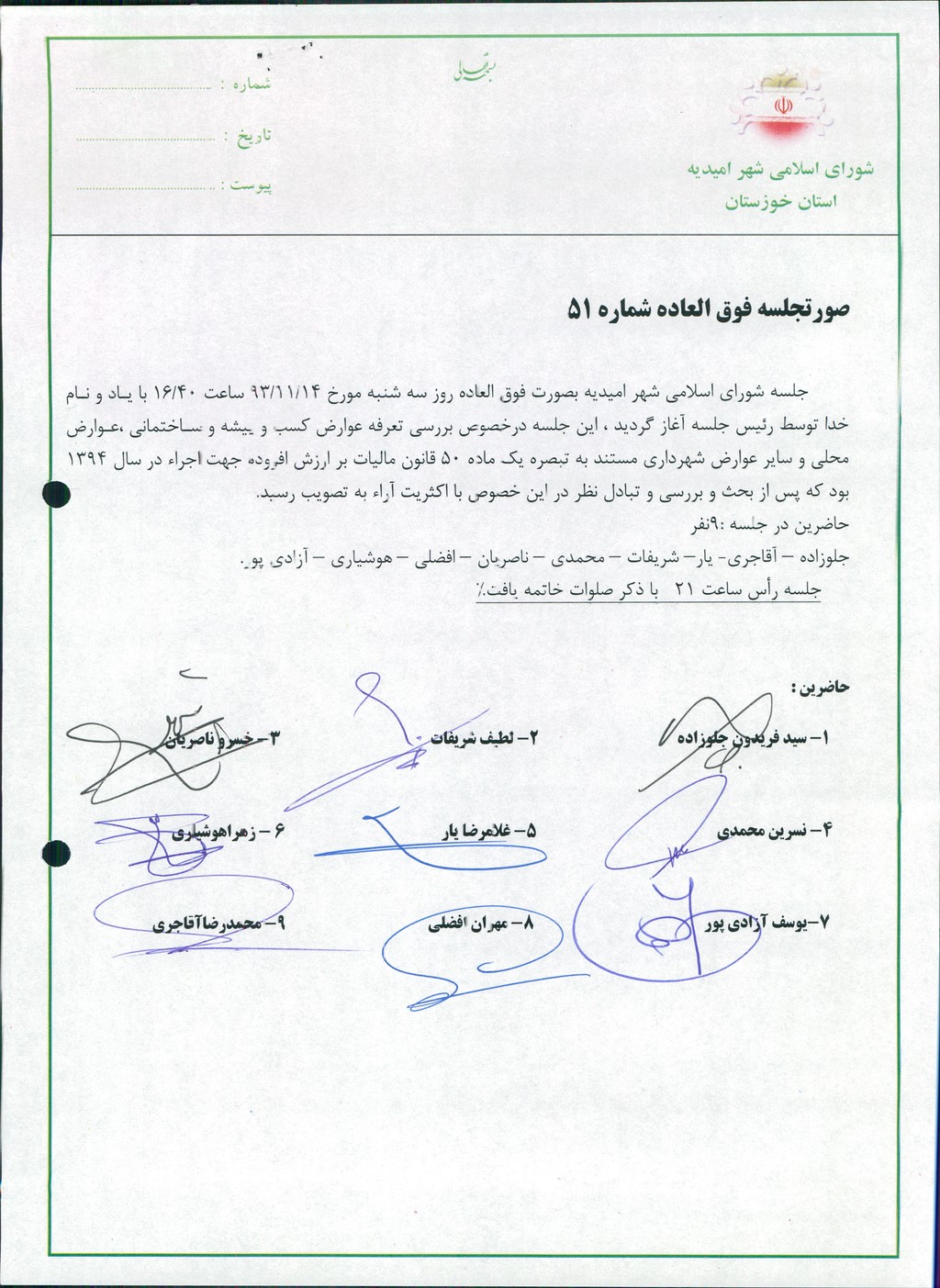 حاضرین در جلسه :۹نفر