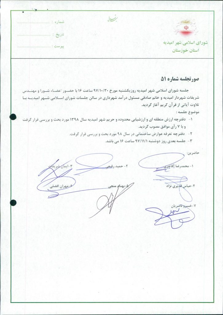گزارش جلسه شماره ۵۱شورای اسلامی شهر امیدیه