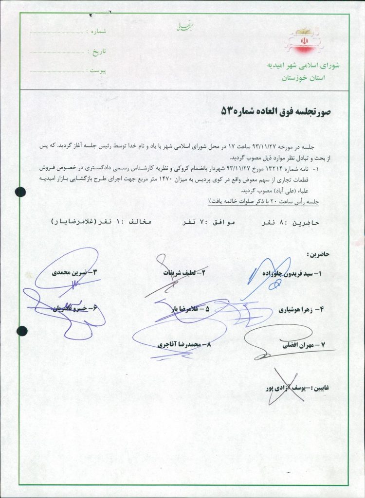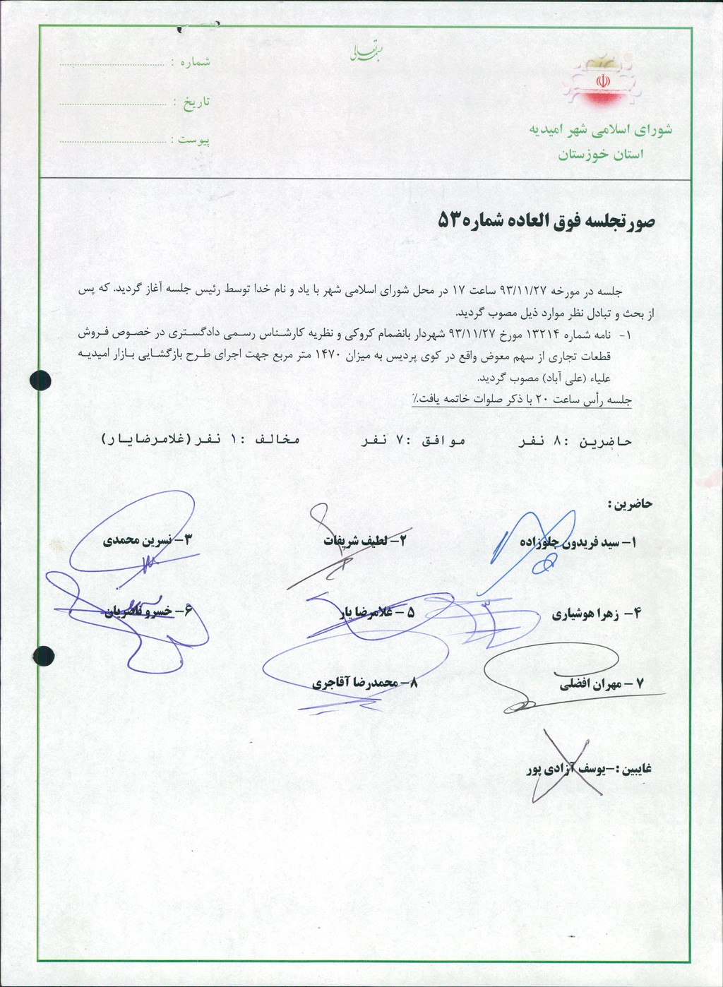 گزارش جلسه شماره ۵۳ شورای اسلامی شهر امیدیه