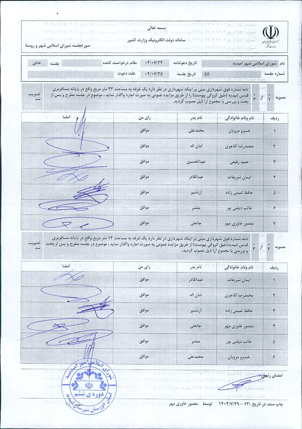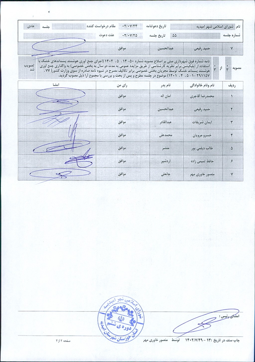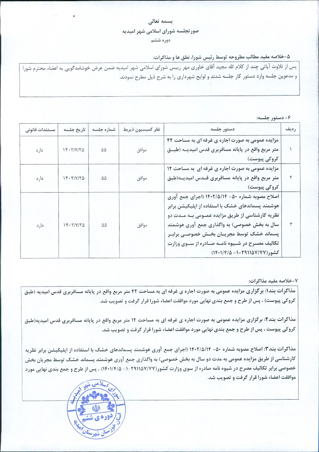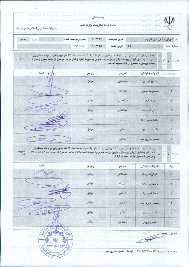 گزارش جلسه شماره ۵۵ شورای اسلامی شهر امیدیه