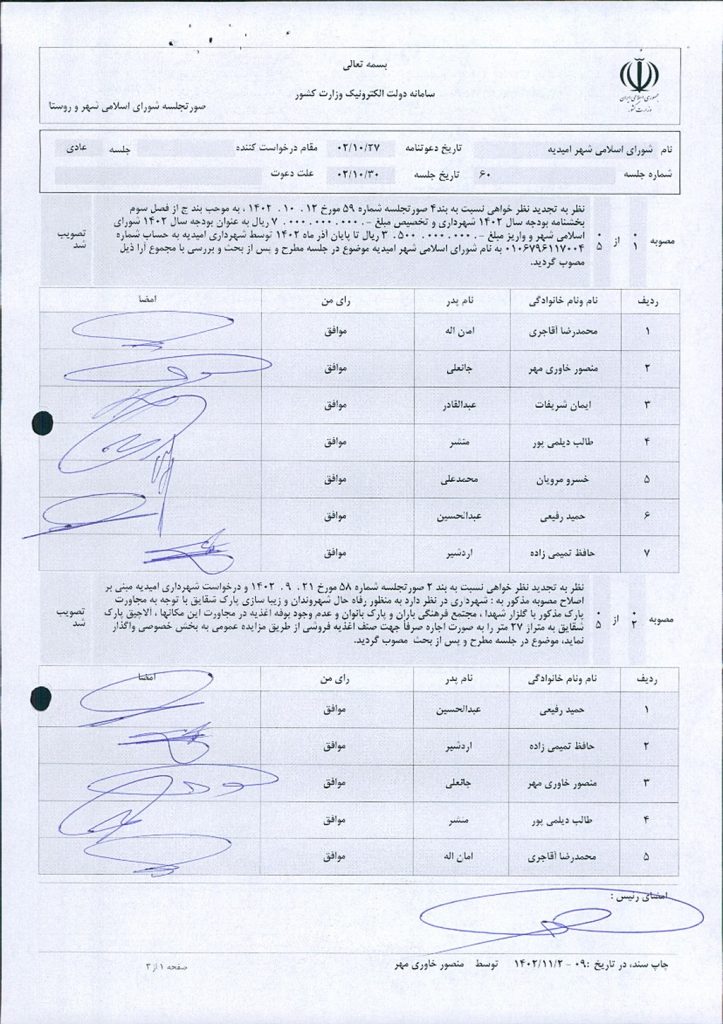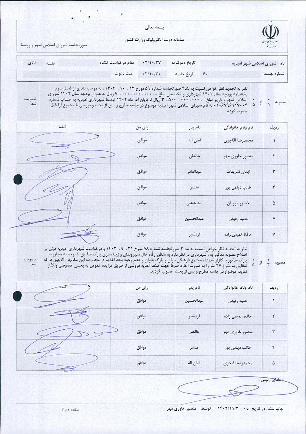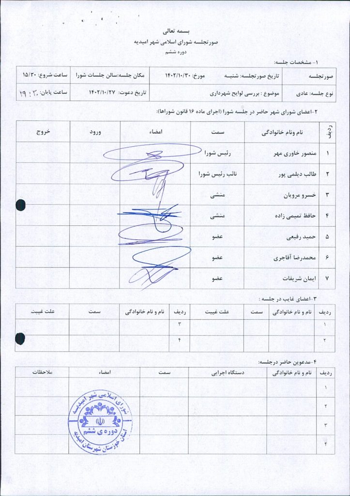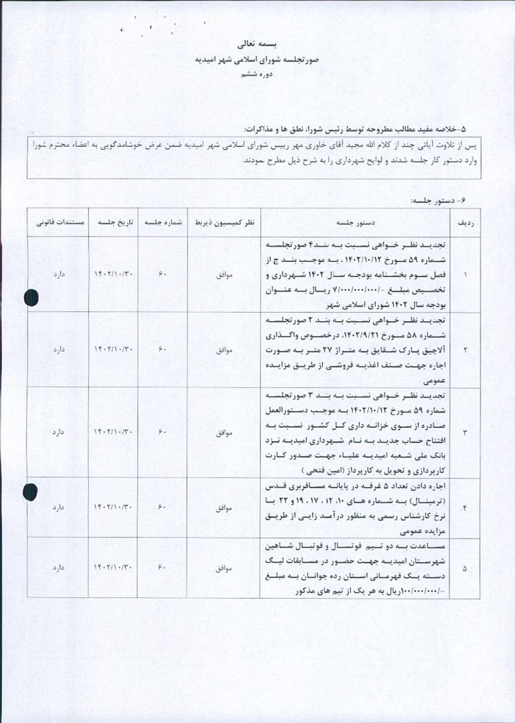 گزارش جلسه شماره ۶۰ شورای اسلامی شهر امیدیه