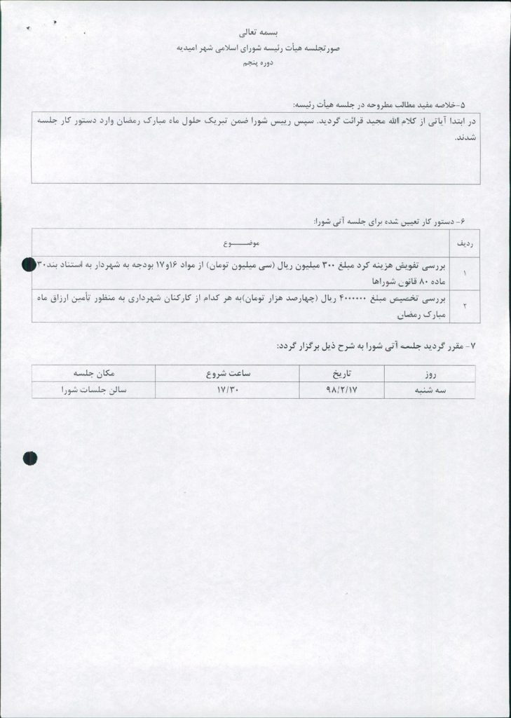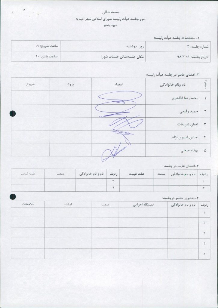 صورتجلسه هیأت رئیسه شورای اسلامی شهر امیدیه