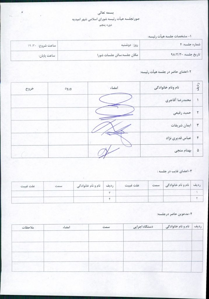صورتجلسه هیأت رئیسه شورای اسلامی شهر امیدیه