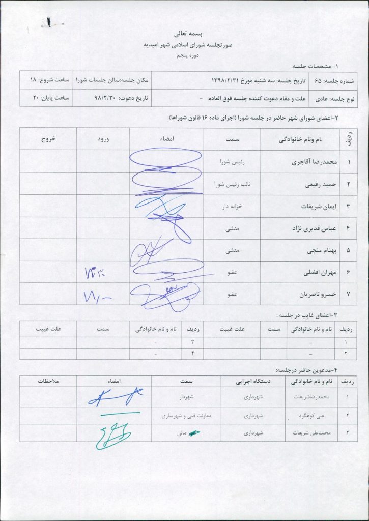 صورتجلسه شورای اسلامی شهر امیدیه