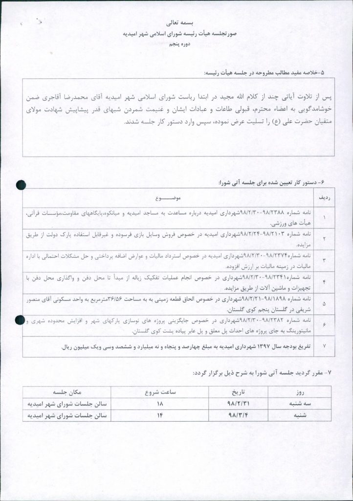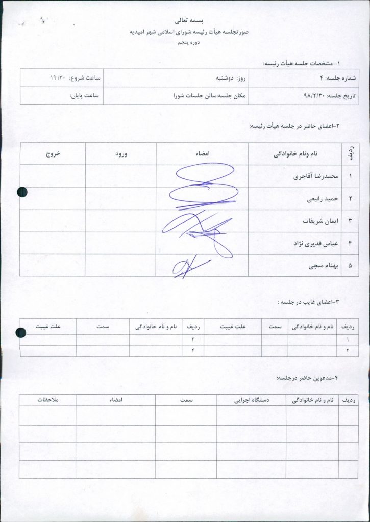 صورتجلسه هیأت رئیسه شورای اسلامی شهر امیدیه