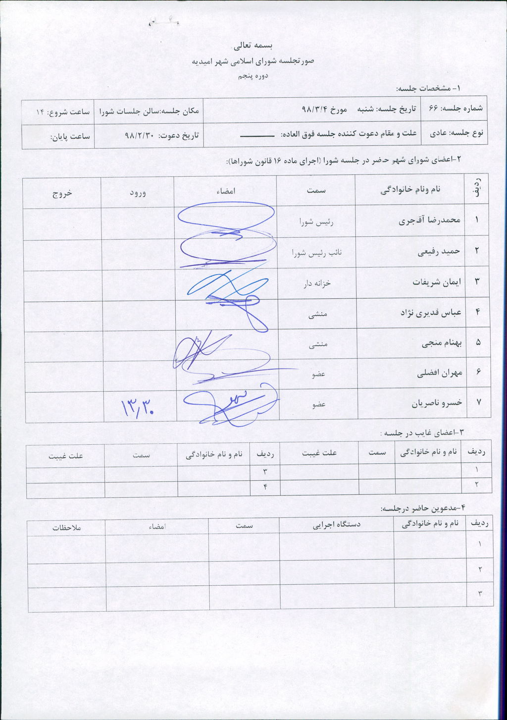 گزارش جلسه شماره ۶۶ شورای اسلامی شهر امیدیه