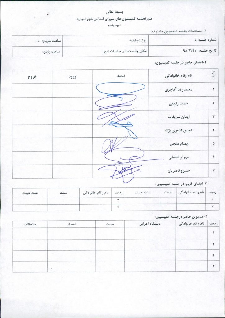 صورتجلسه کمیسیون های شورای اسلامی شهر امیدیه