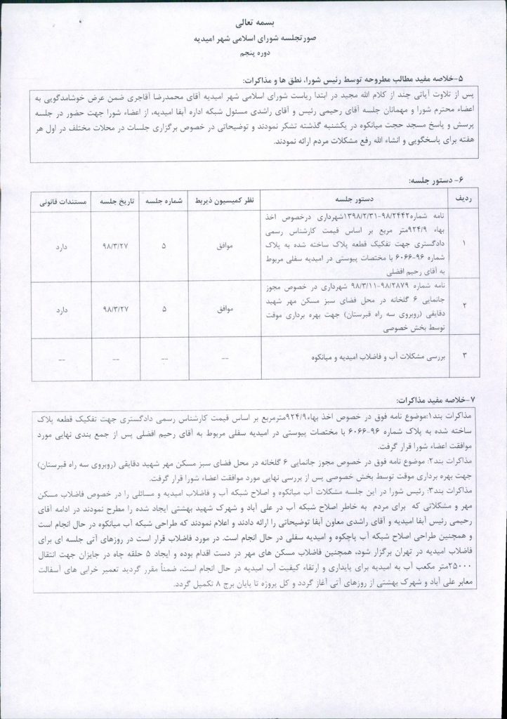صورتجلسه شورای اسلامی شهر امیدیه