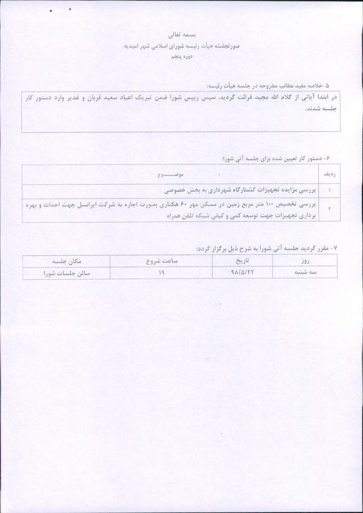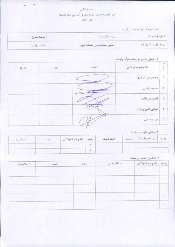 صورتجلسه هیأت رئیسه شورای اسلامی شهر امیدیه