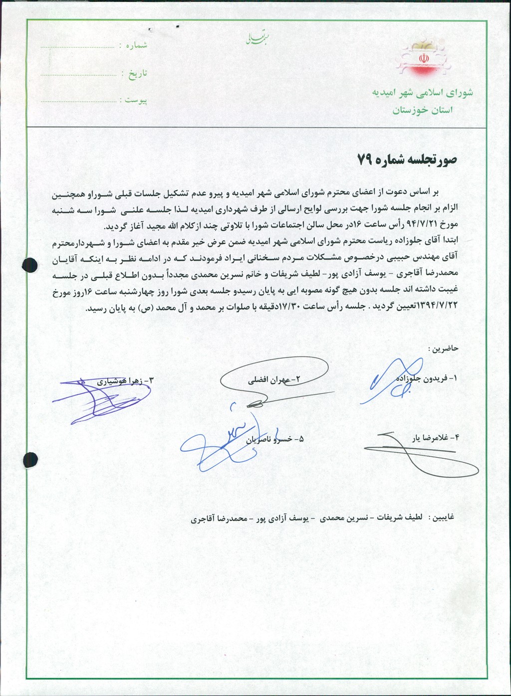 گزارش جلسه شماره ۷۹ شورای اسلامی شهر امیدیه