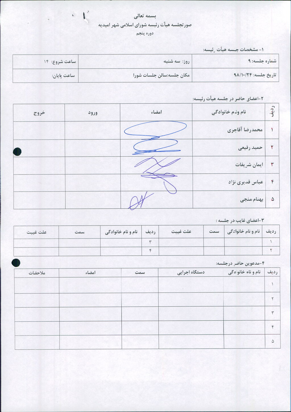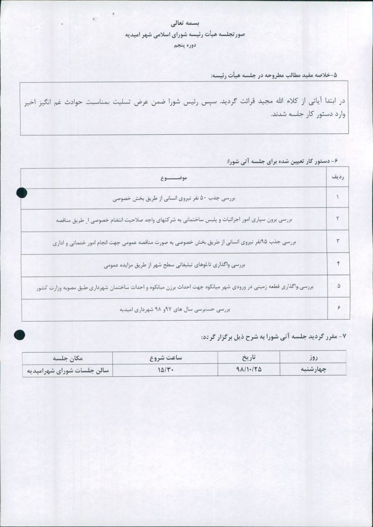 گزارش جلسه شماره ۷۹ هیئت رئیسه شورای اسلامی شهر امیدیه