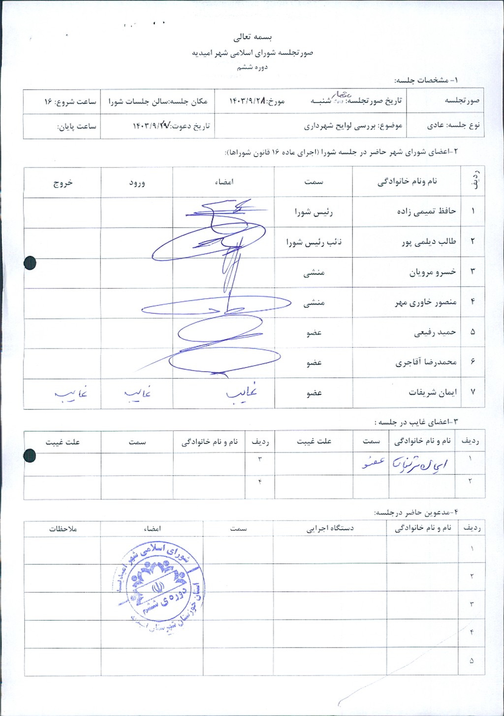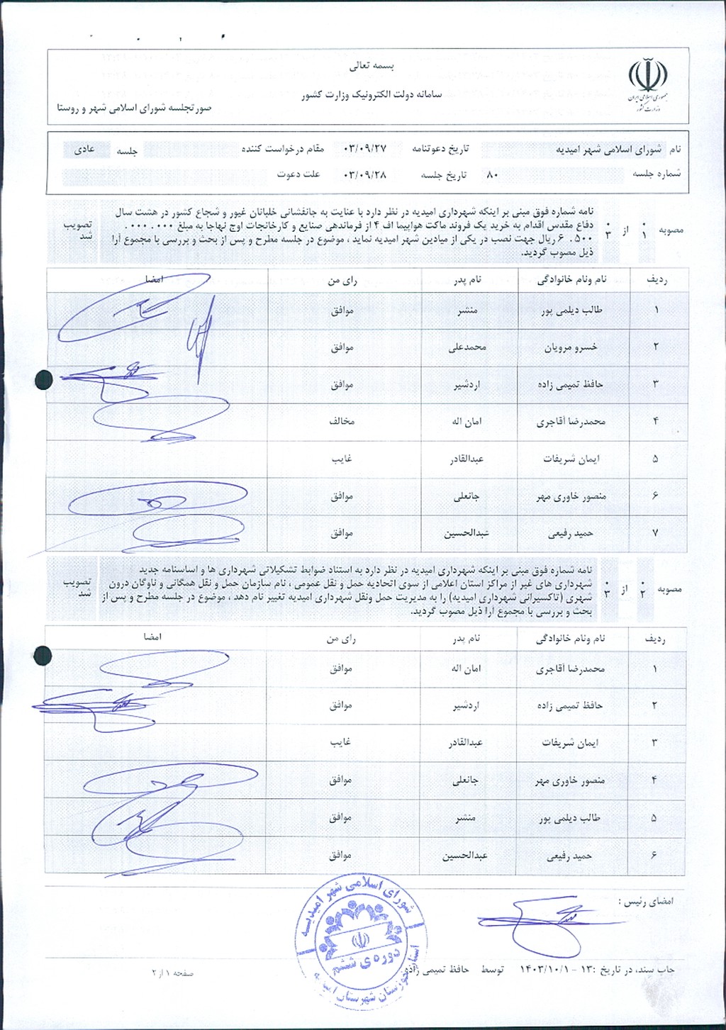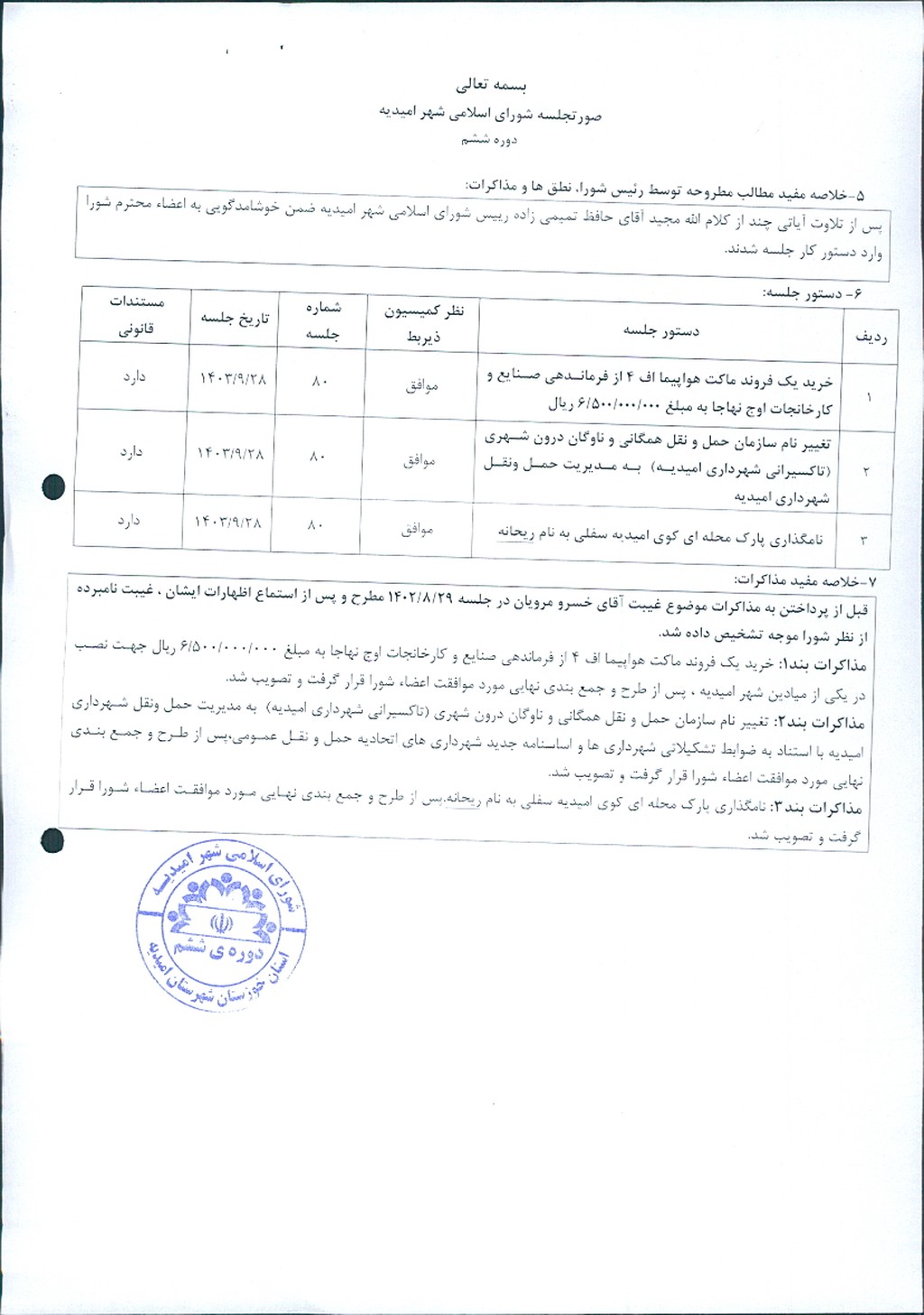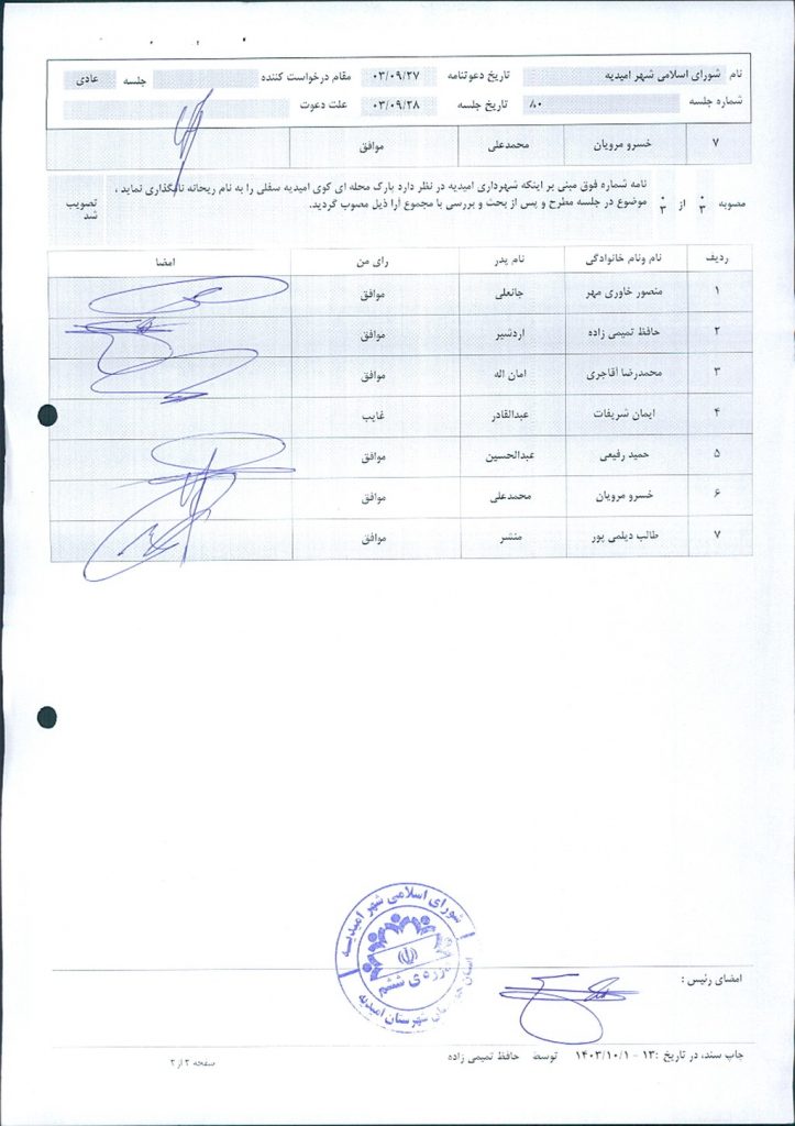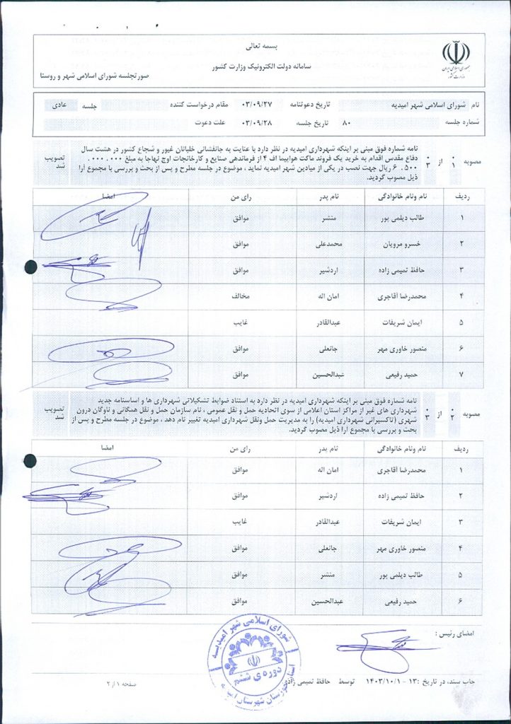 گزارش جلسه شماره ۸۰ شورای اسلامی شهر امیدیه