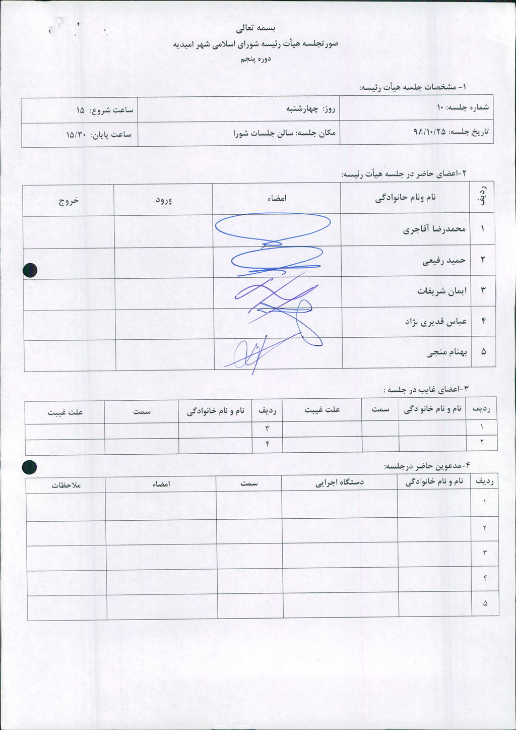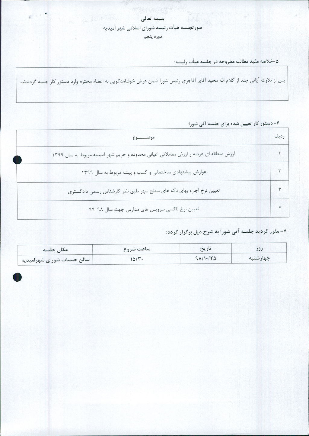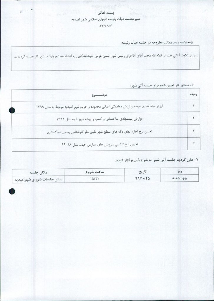 گزارش جلسه شماره ۸۰ هیئت رئیسه شورای اسلامی شهر امیدیه