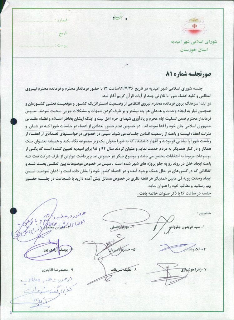 گزارش جلسه شماره ۸۱ شورای اسلامی شهر امیدیه