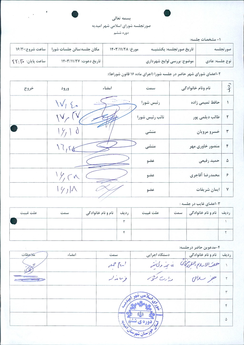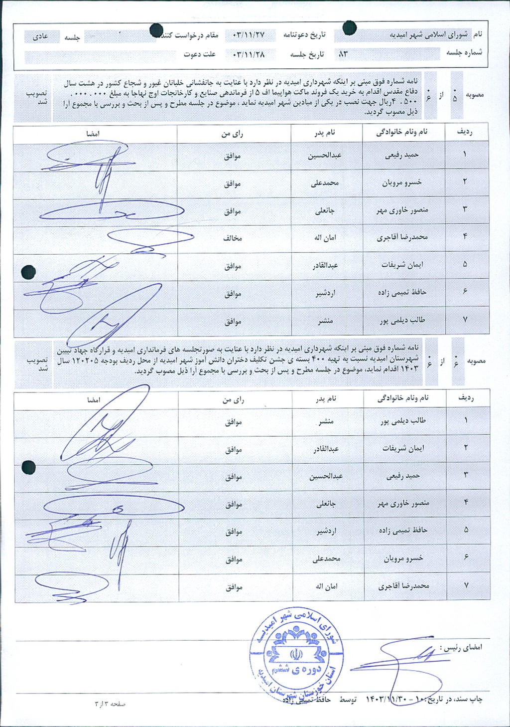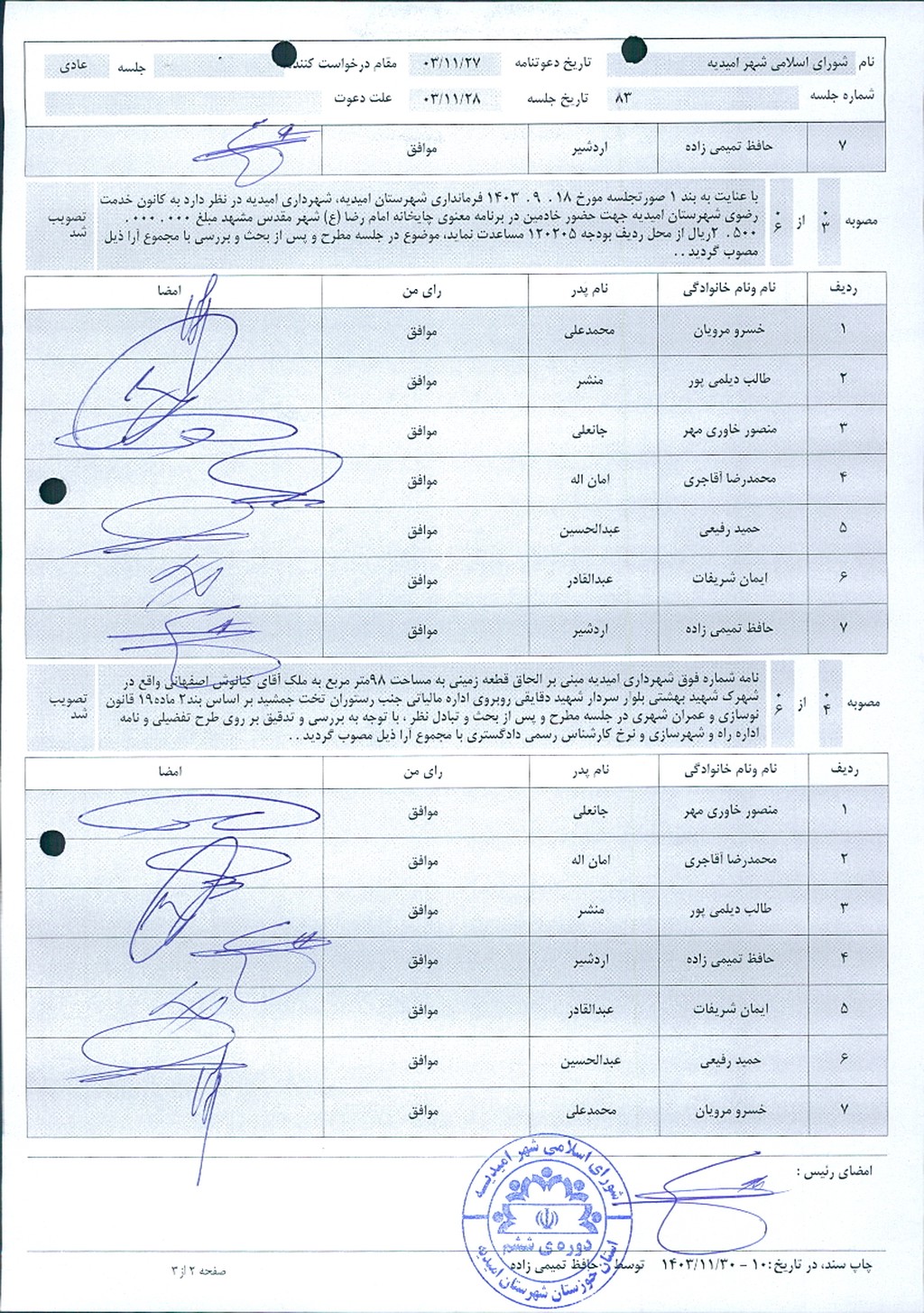 گزارش جلسه شماره ۸۳ مورخ ۱۴۰۳/۱۱/۲۸ شورای اسلامی شهر امیدیه