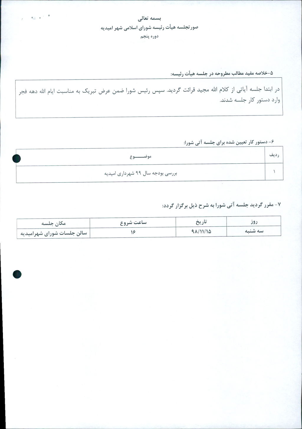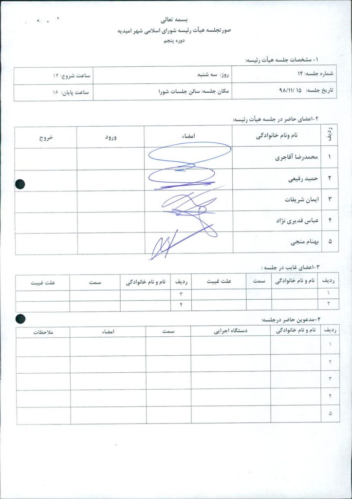 بسم الله الرحمن الرحیم گزارش جلسه شماره ۸۳ هیئت رئیسه شورای اسلامی شهر امیدیه