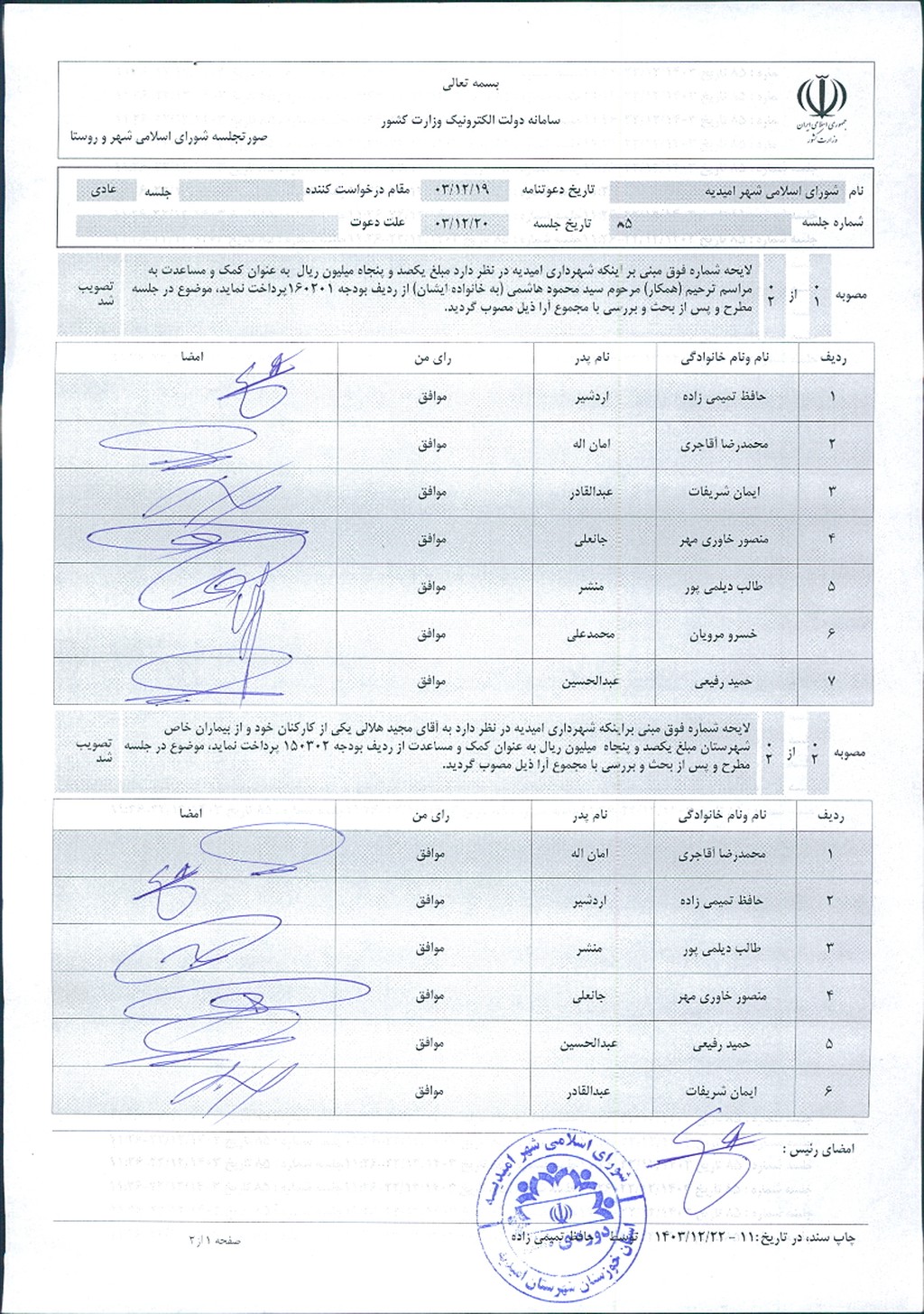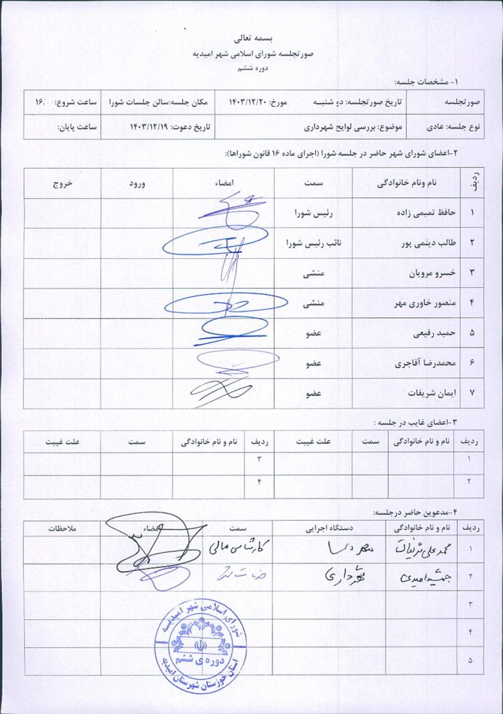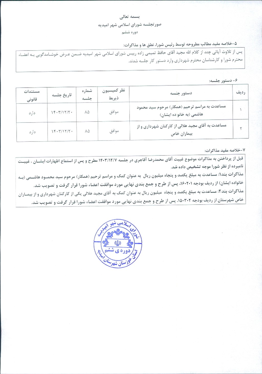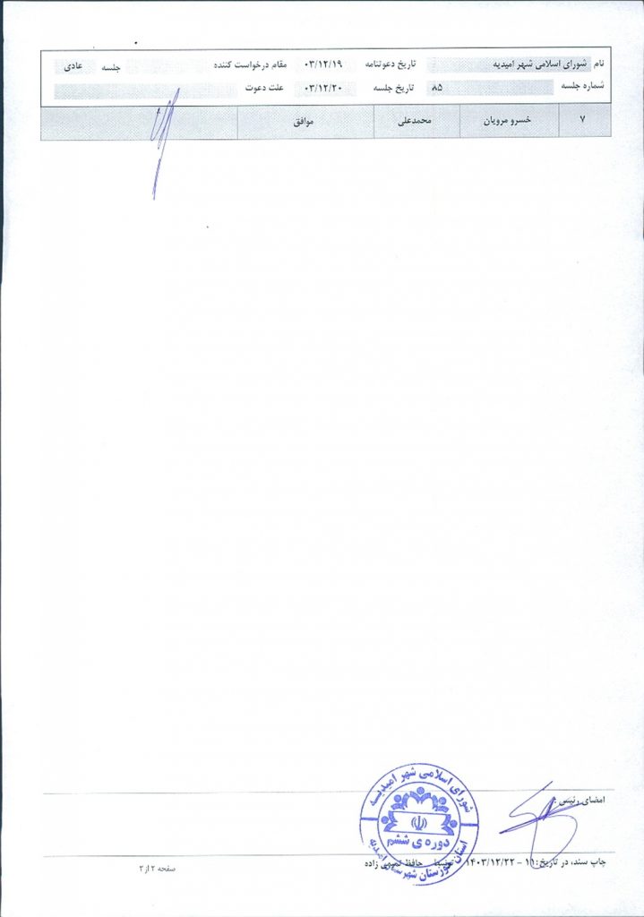 گزارش جلسه شماره ۸۵ شورای اسلامی شهر امیدیه