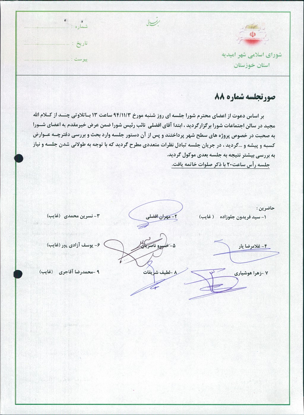 گزارش جلسه شماره ۸۸ شورای اسلامی شهر امیدیه