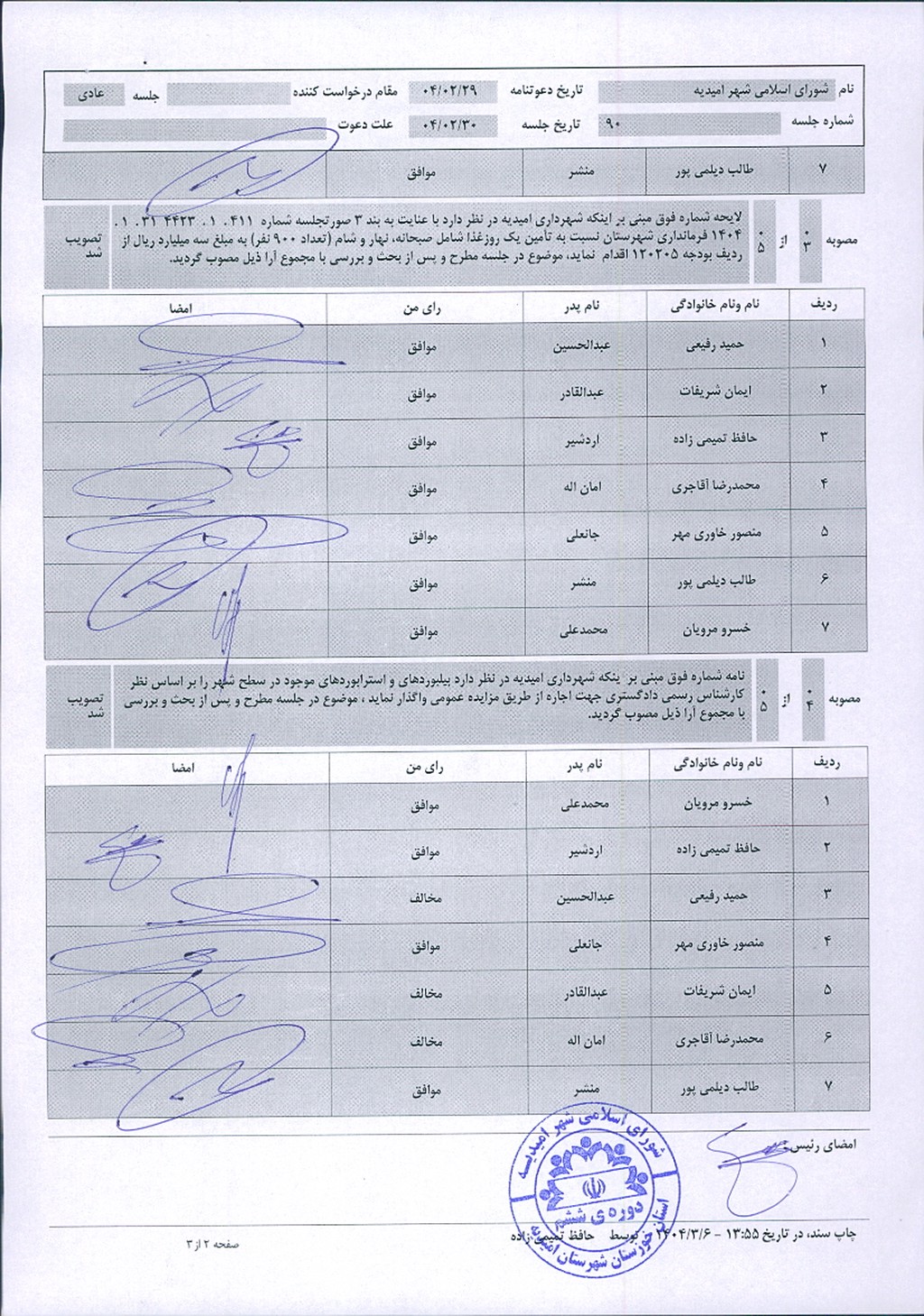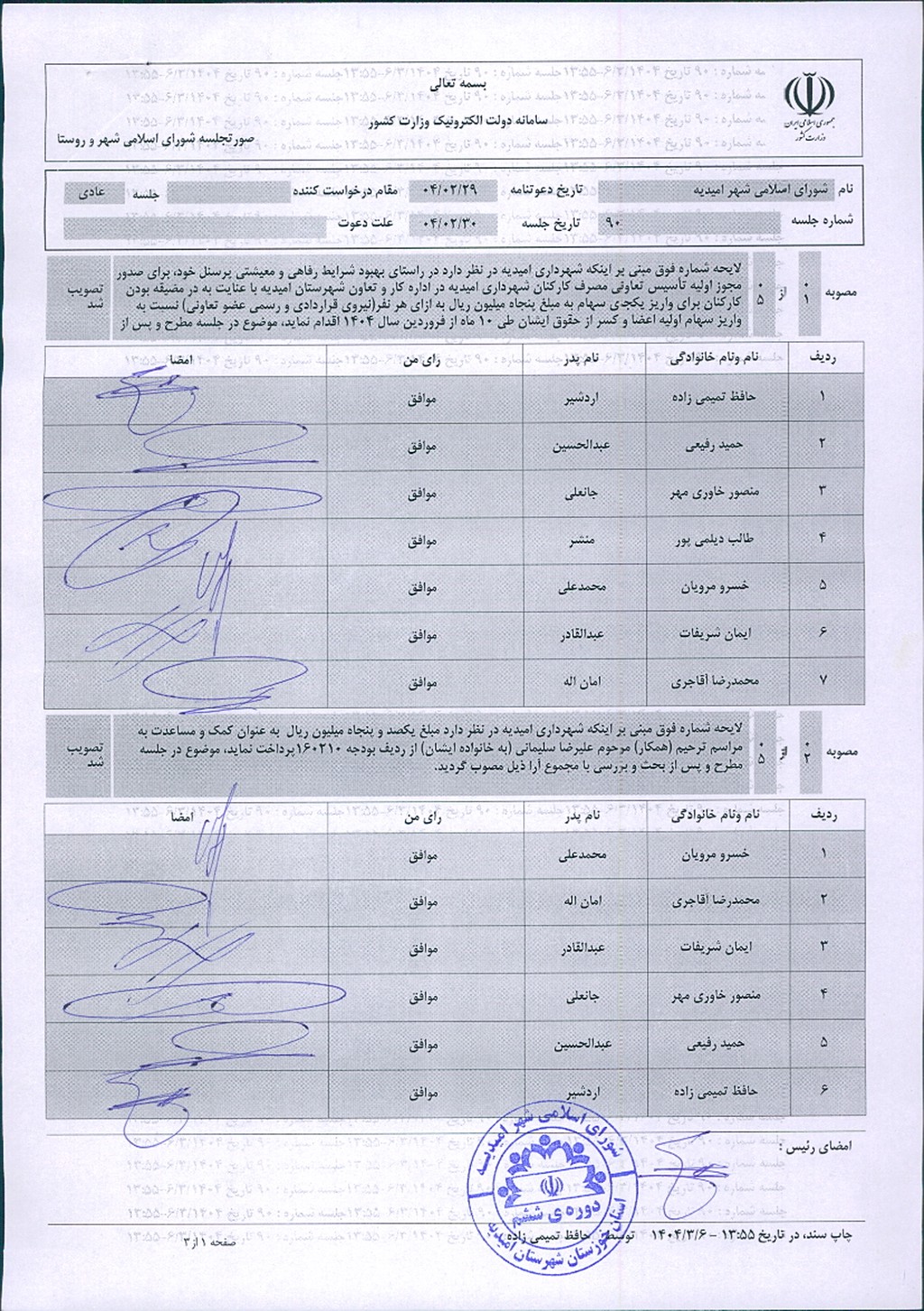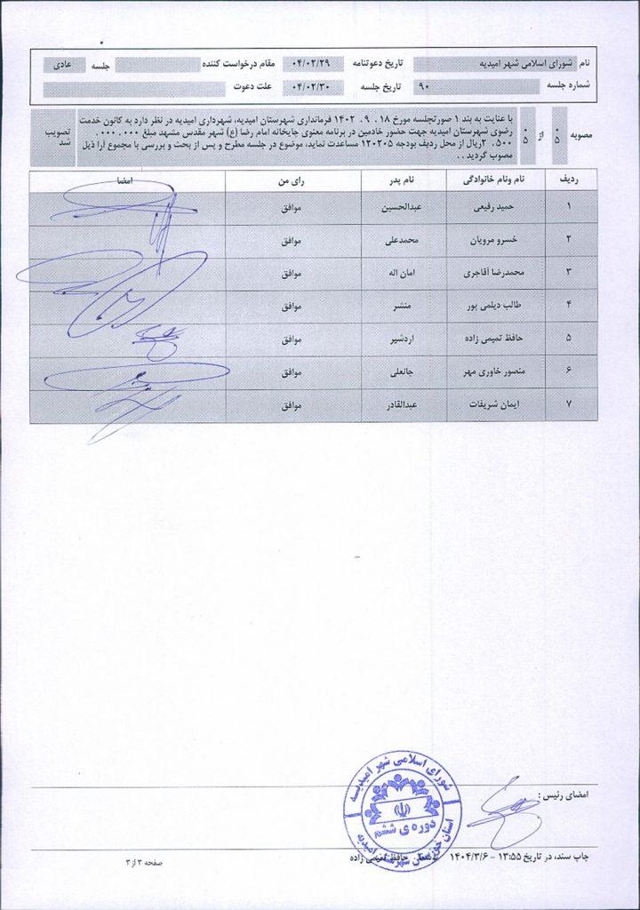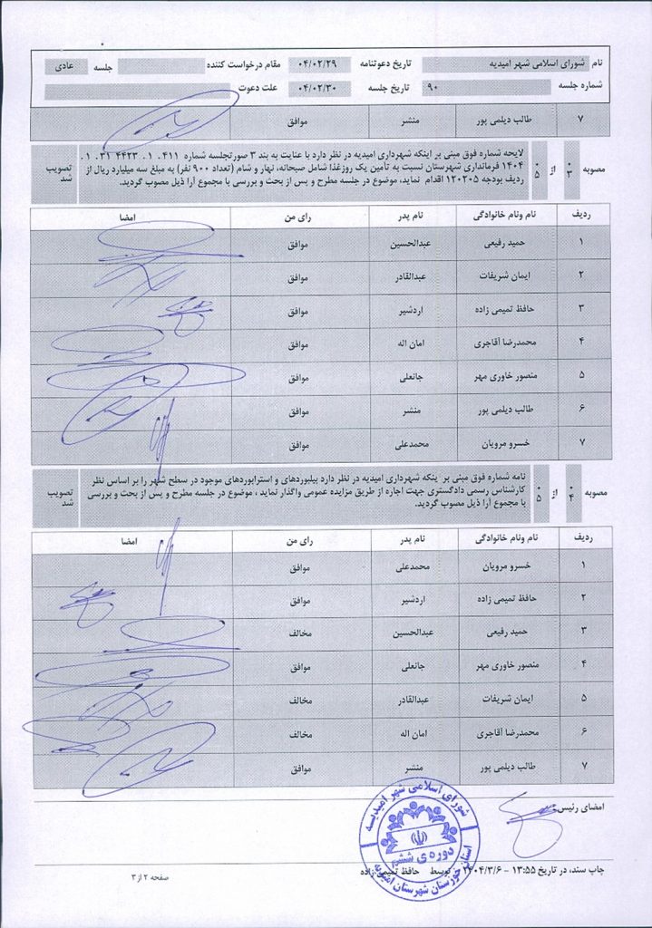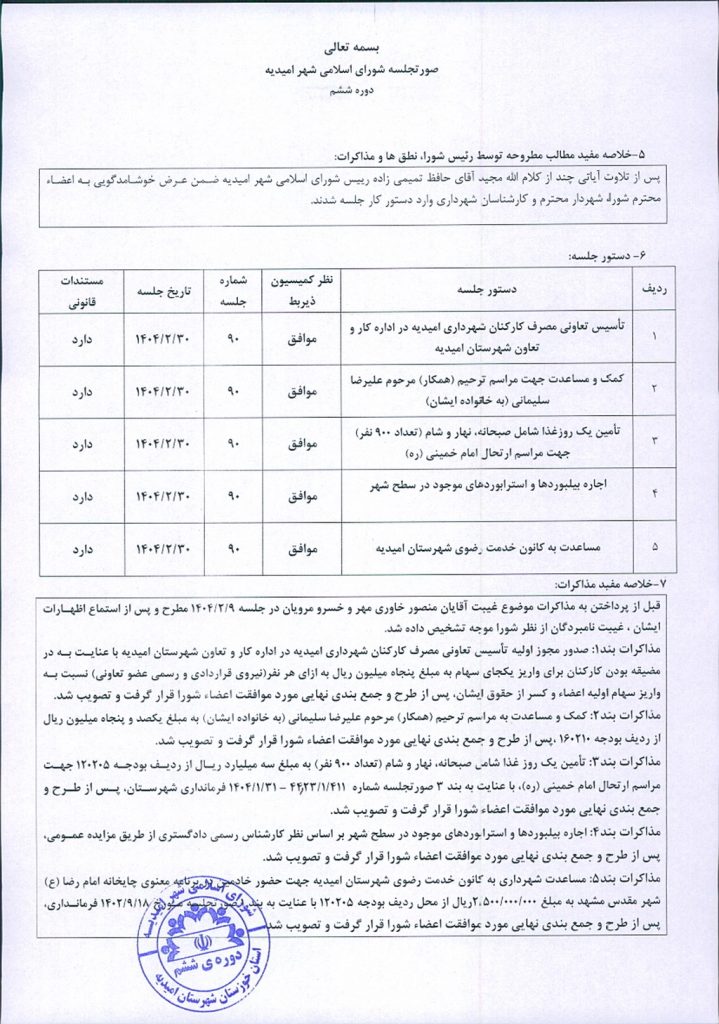 گزارش جلسه شماره ۹۰ شورای اسلامی شهر امیدیه